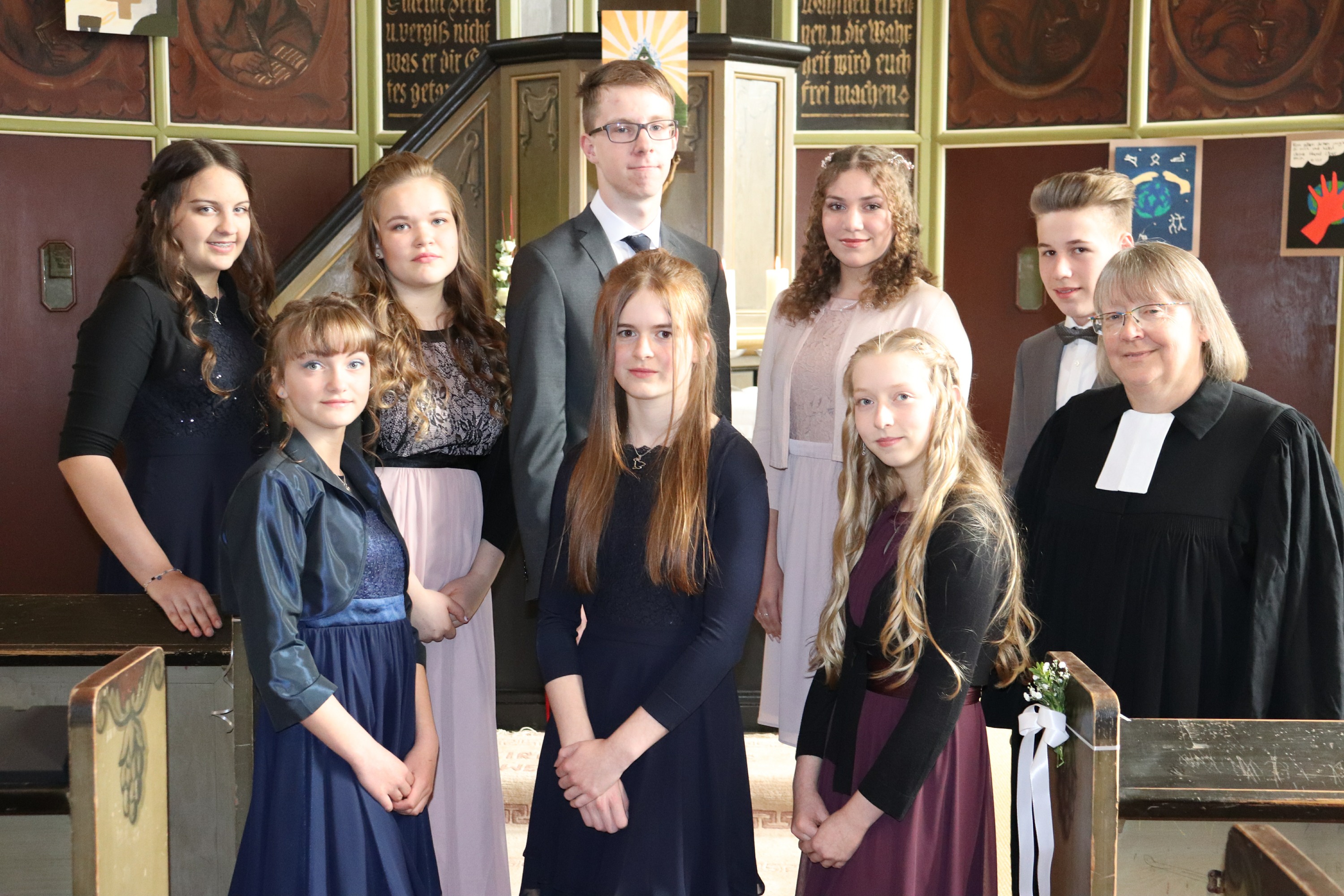 Nach der eine Woche zuvor im Weickartshainer Gotteshaus erfolgten Vorstellung wurden am Sonntag, 14. April 2019 sechs Konfirmandinnen und zwei Konfirmanden aus dem Kirchspiel Lardenbach in der Kirche Weickartshain konfirmiert. Den feierlichen Abendmahlgottesdienst gestaltete Pfarrerin Cordula Michaelsen. Sie erteilte dabei Michelle Appelt (Lardenbach), Antonia Pauline Roth (Klein-Eichen), Sarah Wagner (Weickartshain), Tim Appelt, Lardenbach, Merle Keilhack (Weickartshain), Elvira Fomin (Weickartshain), Hannah Langohr (Stockhausen) und Nils Rattke (Stockhausen) den Segen Gottes.