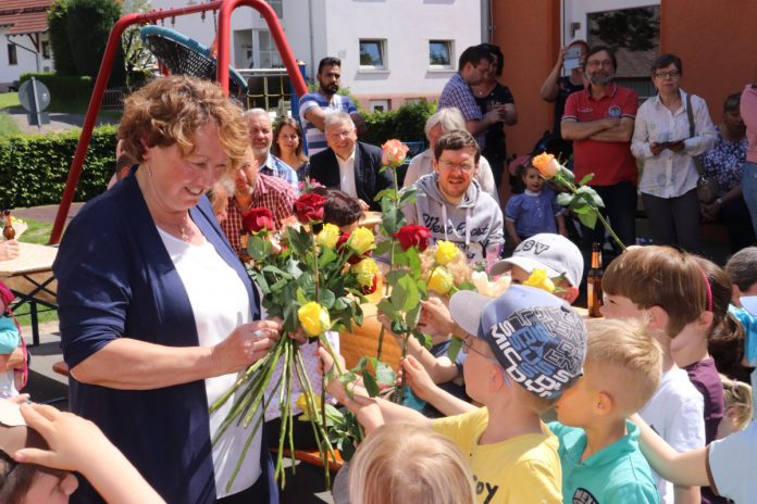 Ein reges Treiben herrschte am vergangenen Samstag in der Lardenbacher Kindertagesstätte „Sonnenschein“ beim diesjährigen Frühlingsfest. Grund für den zahlreichen Besuch von Kindern, Eltern und Großeltern dürfte neben dem Feiern des obligatorischen Frühlingfestes dabei auch die Verabschiedung der langjährigen Leiterin Ursula Seipp gewesen sein. Zu den Gästen zählten ferner mit den vielen ehemaligen Kindergartenkindern auch etliche Eltern der heutigen Kita-Nutzer. Anwesend waren außerdem Bürgermeister Frank Ide und mit Werner Zimmer, Eberhard Schlosser, Kai Jochim und Thorsten Herdejost die Ortsbeiräte bzw. Ortsbeiratsmitglieder aus Klein-Eichen, Weickartshain, Stockhausen und Lardenbach. Bei der Begrüßung ging die scheidende Leiterin Ursula Seipp auf eine 40-jährige „tolle“ Zeit in Lardenbach ein. Sie habe sich hier immer wohlgefühlt. Ihr Dank für das Vertrauen und die Unterstützung galt den Elternbeiräten, den Eltern, den Kolleginnen und den heimischen Vereinen. Das von den Kindern und den weiteren sieben Erzieherinnen zusammengestellte und vorgetragene Programm mit einem Liedvortrag, einem Singspiel, einer ganz besonderen Kindergarten-Geschichte, der Übergabe von Geschenken und von Rosen der einzelnen Kinder ließ nicht nur bei der scheidenden KITA-Leiterin doch etwas Wehmut aufkommen und einige Abschiedstränen fließen. Die besondere einzigartige Leistung der Erzieherin Ursula Seipp fand durch die Vorsitzende des Elternbeirates Katrin Maus eine besondere Würdigung. Anerkennung und Dank für die nahezu 40-jährige Leitung der Einrichtung sprach Bürgermeister Ide. Dabei nannte er nicht nur die bei Seipp immer im Vordergrund stehende Kindererziehung. Gefordert sei sie auch durch die verschiedenen Umbaumaßnahmen und durch die Umsetzung von zahlreichen gesetzlichen Vorgaben. Bedingt durch die Aufnahme von U3-Kindern sei die Einrichtung bis heute auf 62 Kinder angewachsen. Anerkennende Worte übermittelte im Namen der Ortsbeiräte der vier Seenbachtalorte Ortsvorsteher Werner Zimmer. Zugleich überreichte er zusammen mit seinen Ortsvorsteher-Kollegen zum Dank für das besondere Engagement an Ursula Seipp ein Geschenk. Für die Kinder gab es neben den eigenen Darbietungen noch zahlreiche Angebote sich an diesem Nachmittag an den verschiedenen Spielgeräten und beim Karussellfahren zu erfreuen. Genutzt wurde zudem von den Kleinen die Möglichkeit zu einem Glitzer-Tattoo. Zur Stärkung standen für alle Besucher neben Pommes frites und Crêpes auch Hefekuchen, sowie diverse Getränke bereit.