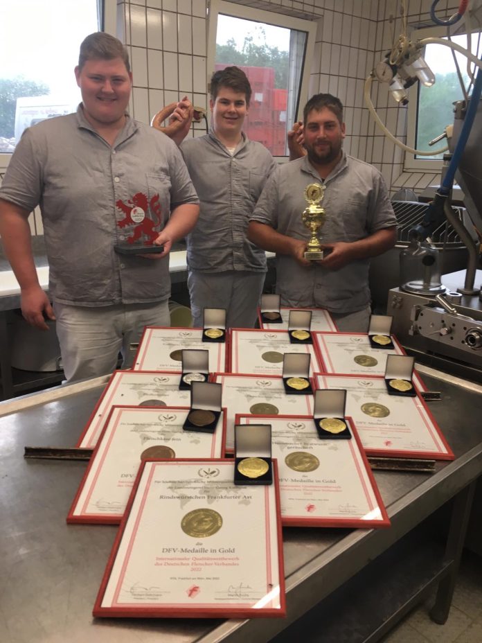 Die hervorragende Qualität der Produkte der Lardenbacher Landmetzgerei Hans-Georg Kielbassa wurde bei dem im Rahmen der internationalen Fleischermesse in Frankfurt durchgeführten Internationen Qualitätswettbewerb wiederum bestätigt. Nach bereits mehrfachen erfolgreichen Teilnahmen gab es in diesem Jahr für die zehn eingereichten Wurstsorten erneut für den Handwerksbetrieb aus Oberhessen sieben Goldmedaillen. Zudem verliehen die internationalen Bewerter noch neben entsprechenden Urkunden eine Silber und zwei Bronzemedaillen. Als zusätzliche Anerkennung für die überaus hohe Zahl der mit Gold bewerteten Wurstwaren erhielt die Grünberger Stadtteilmetzgerei mit ihre Filiale in Laubach noch einen Sonderpokal. Die 1949 von Georg Kielbassa gegründete Metzgerei verarbeitet fachgerecht durch den heutigen Firmenchef und den als Lehrlinge in das Unternehmen eingetretenen und nunmehr angestellten Metzgermeister Marco Adam, den Gesellen Fabian Mahr, sowie dem Auszubildenden im zweiten Lehrjahr, Erik Bienek ausschließlich nach umweltrelevanten Vorgaben Fleisch von Landwirten aus der heimischen Region. Die Anerkennung des Firmeninhabers und dessen Ehefrau Beate gelten dabei nicht nur den drei Metzgern im Schlachthaus, sondern auch dem im Verkauf und in der Essenzubereitung tätigen Team, das ebenfalls maßgeblich zur hohen Qualität der Metzgerei beiträgt.