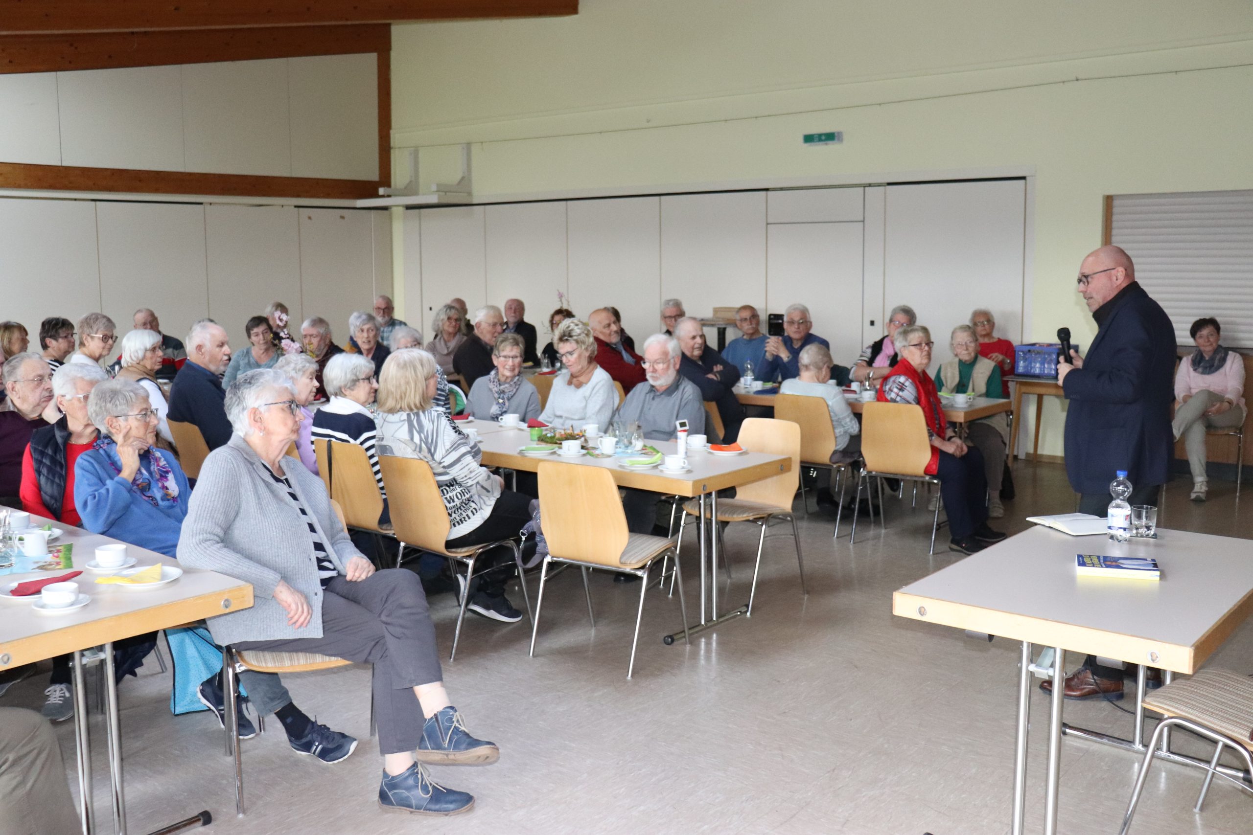 Mit Interesse lauschten 60 Personen beim Seniorentreff Lardenbach/Klein-Eichen dem Vortrag des Altersmediziners Dr. med. Jürgen Bludau zum Thema „Mit Freude am Leben älter werden“. Der Facharzt für Innere Medizin beschäftigt sich seit über 25 Jahren in der klinischen Geriatrie und dem Älterwerden. Mit zahlreichen Praxisbeispielen zeigte der Chefarzt der Geriatrie der Asklepios Klinik Lich auf, worauf es ankommt, um gesund, vernünftig und in Würde alt zu werden. Er stellte dabei seine drei „Bludauschen Ratschläge als wichtige persönliche Grundlage für ein gesundes und gut vorbereitetes Älterwerden in den Vordergrund. So sollte man persönliche Einschränkungen akzeptieren, nicht in der Vergangenheit, sondern „Heute Leben“ und drittens „Verzeihen, Loslassen und positiv bleiben“. Wichtig zur Freude am Leben seien für ältere Menschen die Prophylaxe, der Gesundheitscheck, die Ernährung, die Bewegung und die Fitness. Dazu gehören auch ein notwendiger Impfschutz und der entsprechender Umgang mit Medikamenten. Zur Vorsicht warnte der Buchautor bei den „falschen“ Versprechungen der Anti-Aging-Industrie. Als Fazit war am Ende seiner Ausführungen die Feststellung, dass unter der Voraussetzung es richtig anzustellen, „Alt werden ein Vergnügen sein kann“. Nach dem informativen Beitrag erfreuten sich die Anwesenden bei reger Unterhaltung an der Kaffeetafel mit verschiedenen selbstgebackenen Hefekuchen.