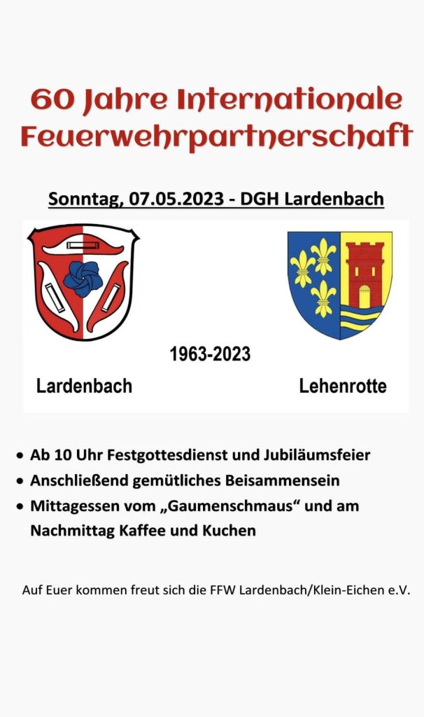Start _Ankündigungen 60 Jahre Feuerwehr-Partnerschaft 60 Jahre Feuerwehr-Partnerschaft 16. April 2023 516