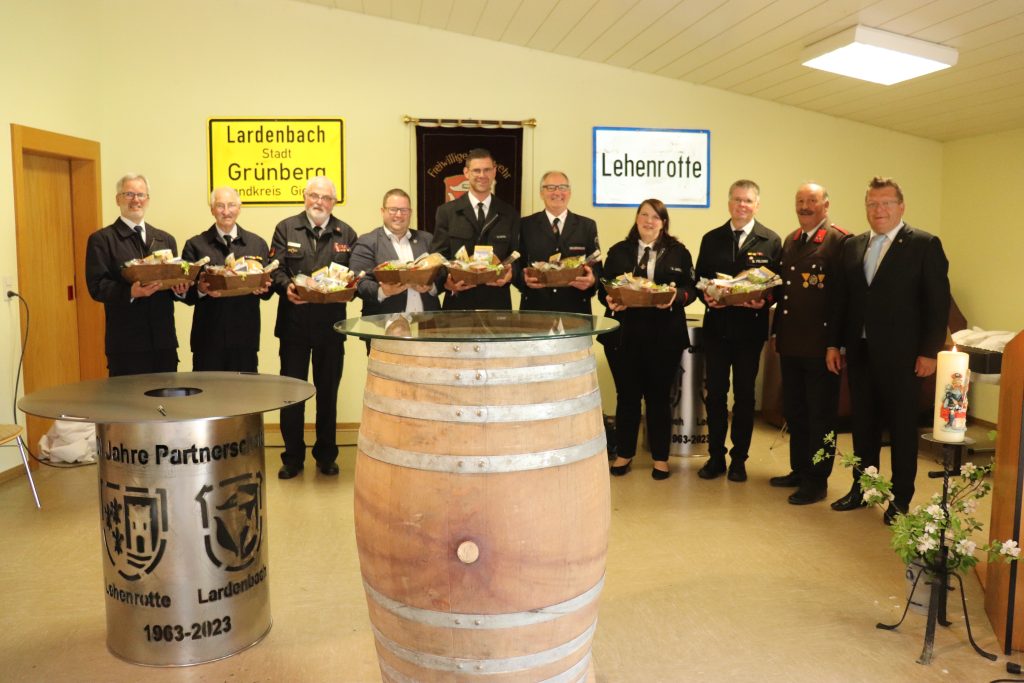 Wankmüller, Hans Lampl und der mit angereiste Fritz Auer. Berichtet wurde von zahlreichen Treffen und den sich daraus ergebenden persönlichen Freundschaften. Besonders gefeiert wurden das 20-jährige, das 25-jährige, das 40-jährige und im Jahr 2013 in Anwesenheit der Kreis Gießener Landrätin Anita Schneider das 50-jährige Jubiläum in Lehenrotte. Bürgermeister Christian Leeb von der Marktgemeine Türnitz sprach beiden Wehren für den kameradschaftlichen Umgang und für die Pflege der Partnerschaft anerkennende Worte aus. Grünbergs Bürgermeister Marcel Schlosser würdigte ebenfalls das partnerschaftliche Wirken. Er wünsche sich, dass diese außergewöhnliche Partnerschaft auch in Zukunft von den nachfolgenden Generationen beider Feuerwehren gepflegt werde. Grüße und Glückwünsche von Landrätin Anita Schneider überbrachte der Hauptamtlicher Kreisbeigeordneter Frank Ide. Der ehemalige Grünberger Bürgermeister appellierte als langjähriger Unterstützer dieser Partnerschaft, dass „Europa gelebt werden muss“. Weitere Grußworte sprachen im Namen der Ortsbeiräte Ortsvorsteher Christian Ruppel, der Grünberger Stadtbrandinspektor Jörg Sprankel und als Vertreter des Kreisfeuerwehrverbandes Gießen, Lothar Theis. Zum Abschluss der offiziellen Feier erfolgte vor der Unterzeichnung der Partnerschaftsurkunden durch die Bürgermeister Leeb und Schlosser, sowie des Kommandanten Auer und der Vorsitzenden Janczyk der Austausch von Erinnerungsgeschenken an die jeweiligen Wehren. Präsente erhielten zudem einige die Partnerschaft unterstützende Feuerwehrangehörige aus Lardenbach.