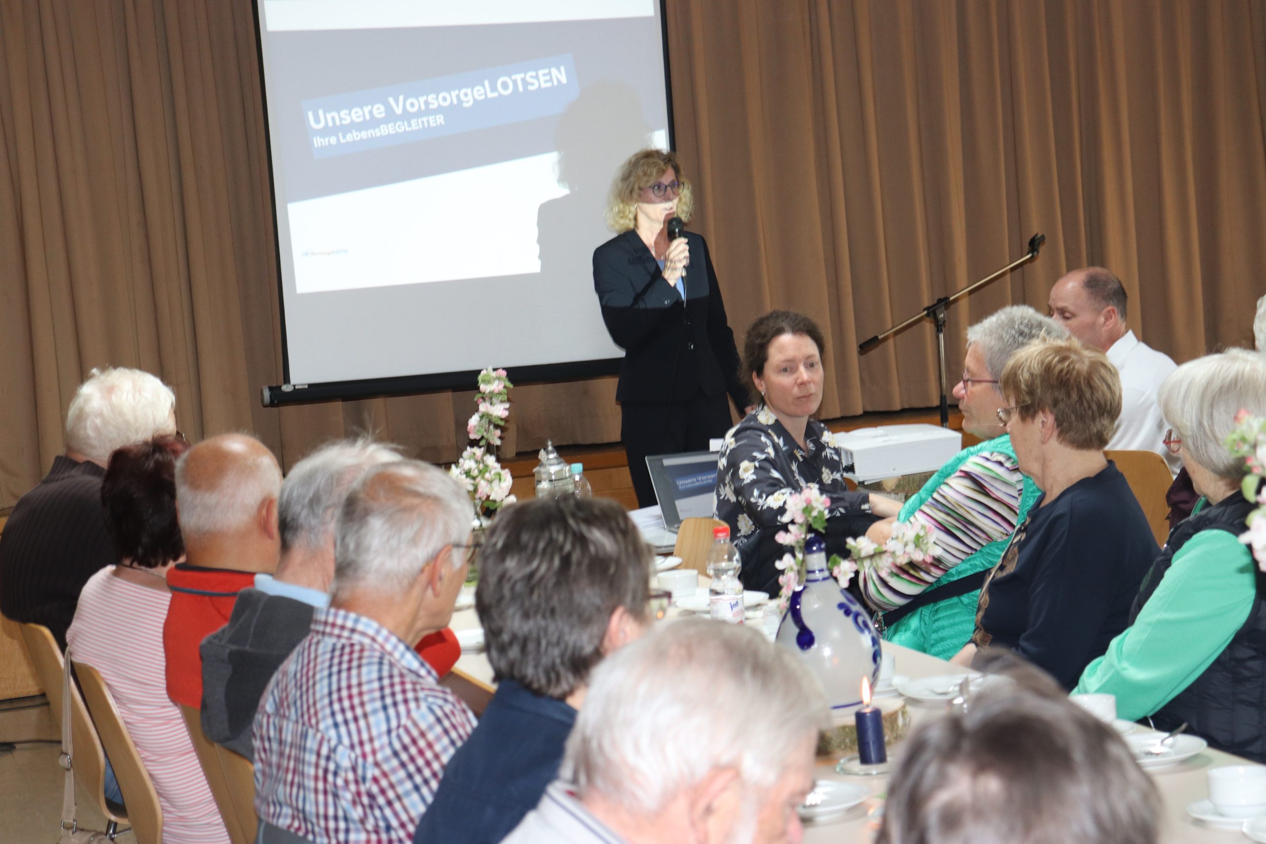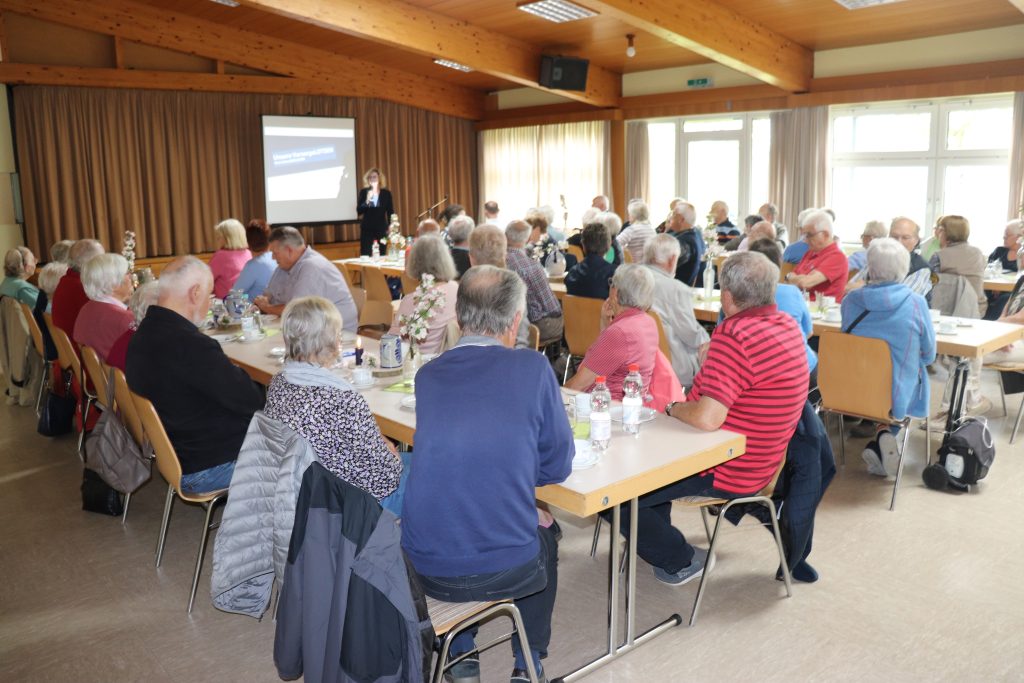 Beim monatlichen Treffen der Seniorinnen und Senioren aus Lardenbach und Klein-Eichen referierten bei den sechzig Anwesenden aus Lardenbach und Klein-Eichen die VorsorgeLOTSEN der Volksbank Mittelhessen Waltraud Cornelia Theis, Steffen Knobloch und Katja Böhm zum Thema „Vorsorge mal anders!“. Im Mittelpunkt standen weniger Bankgeschäfte und Finanzen. Schwerpunkte waren dabei eher die Hilfsangebote für eine persönliche Lebensqualität. Eine besondere Beachtung fand die Feststellung, dass gerade im Alter und auf dem Lande das gesellschaftliche Leben leide und eine gewisse Vereinsamung spürbar sei. Viele Menschen machen sich daher auch Gedanken über ihre Zukunft. Um einen altersgerechten Alltag zu genießen, bieten die VorsorgeLOTSEN der Volksbank Mittelhessen durch die angebotene Zusammenarbeit mit zahlreichen erfahrenen Partnern eine Unterstützung an. Mit dem Wissen einer 160-jährigen Bank- und Lebenserfahrung kann eine Begleitung mit Tipps zum altersgerechten Wohnen, Hilfe bei der Suche nach geeigneten Pflegeangeboten oder auch bei der Erledigung des persönlichen Schriftverkehrs mit Behörden usw. in Anspruch genommen werden. Die während der anschließenden gemütlichen Kaffeerunde geführten persönlichen Gespräche mit den VorsorgeLOTSEN dürften der Beweis für eine im Einzelfall notwendige hilfreiche Beratung sein.