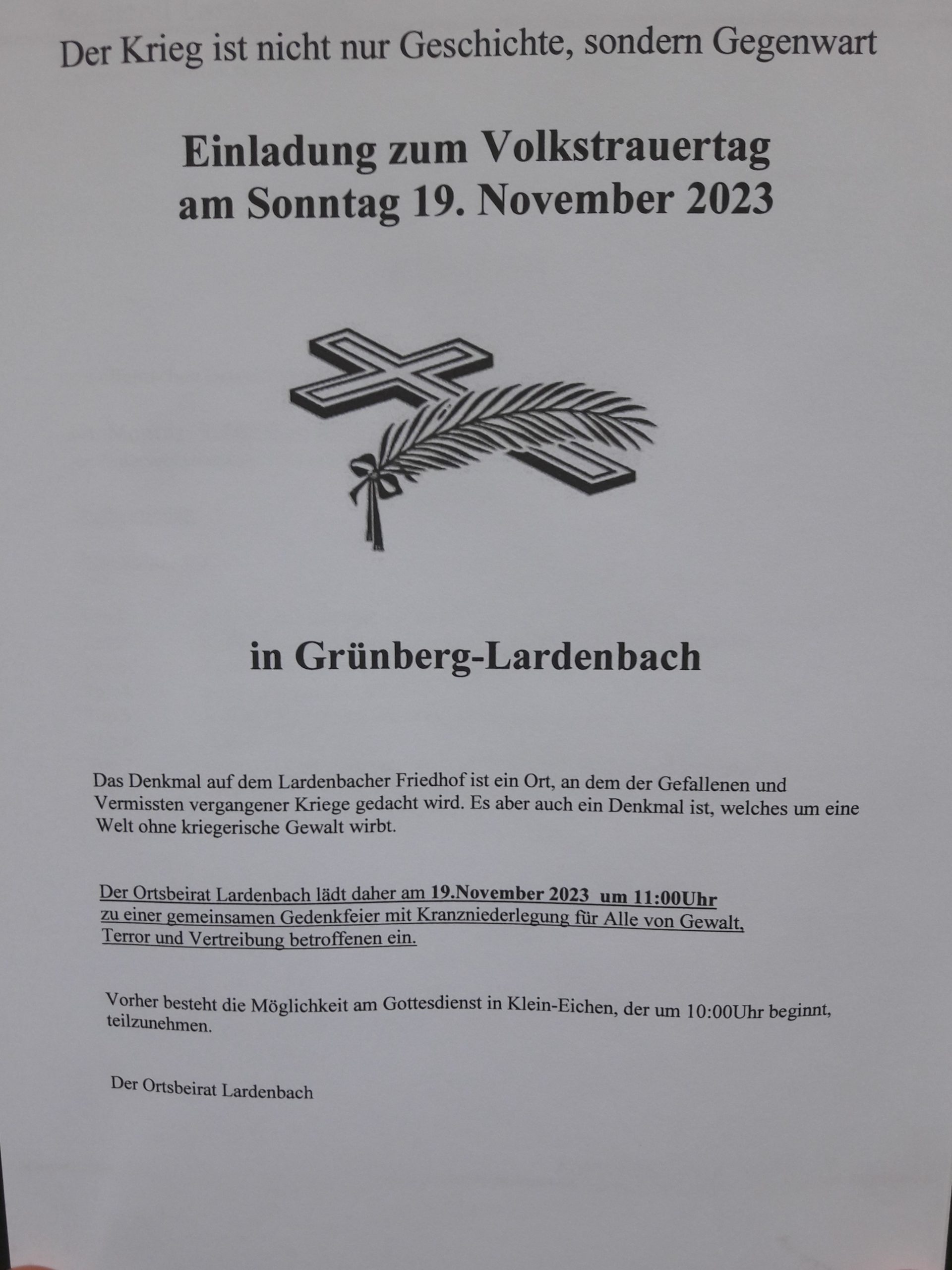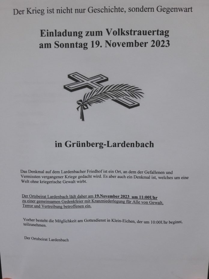 Start _Ankündigungen Volkstrauertag in Lardenbach Volkstrauertag in Lardenbach 28. Oktober 2023 668 Einladung zur Gedenkfeier