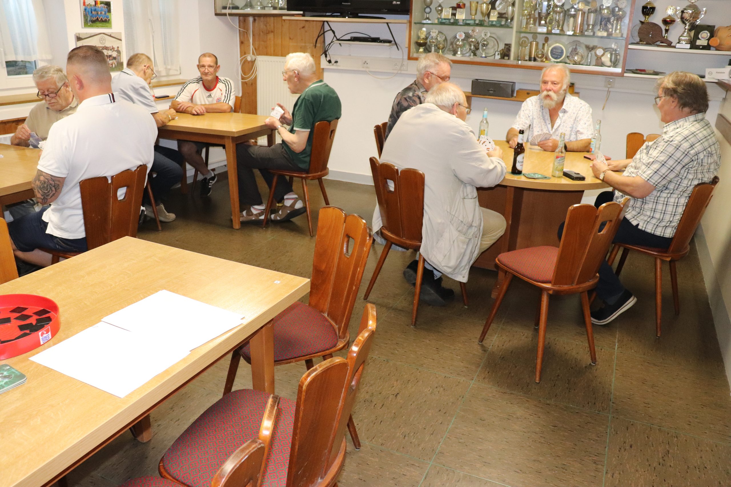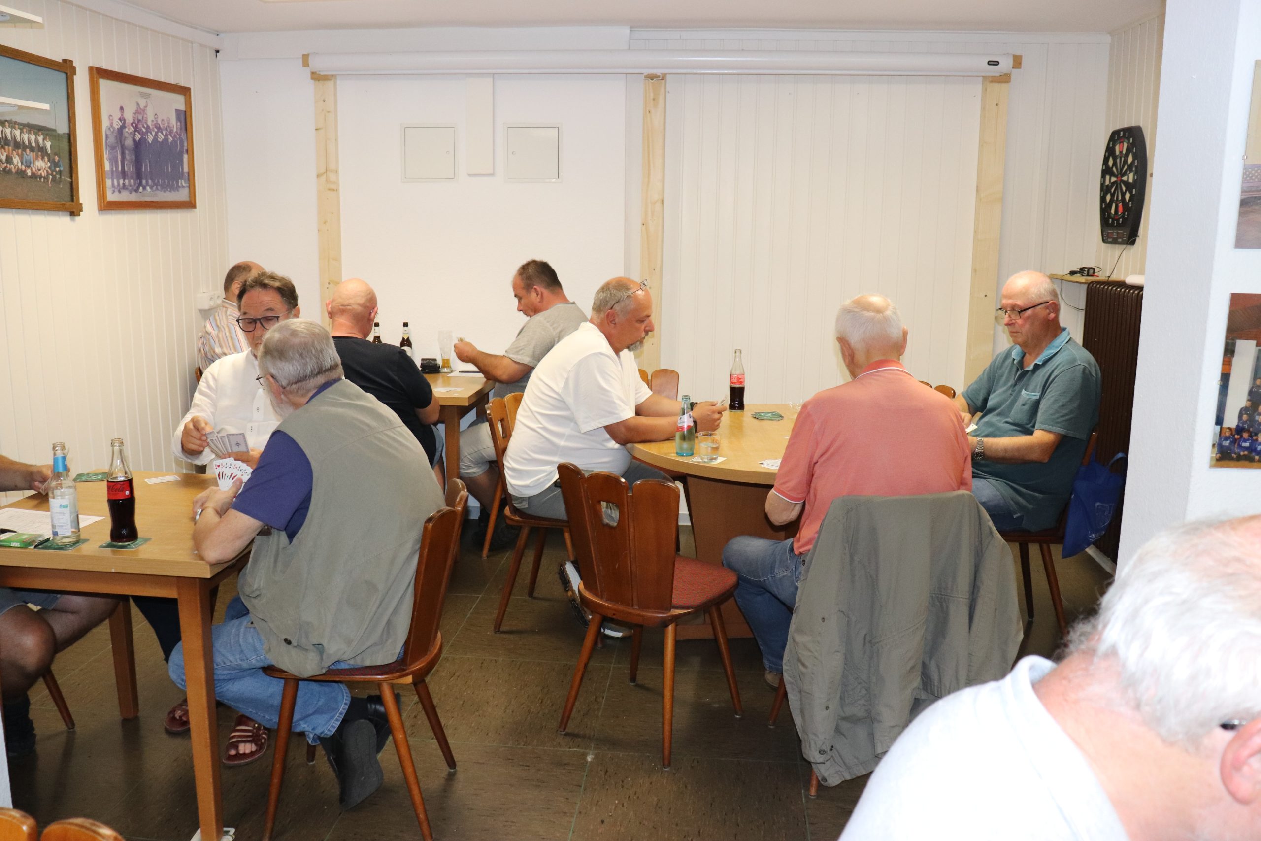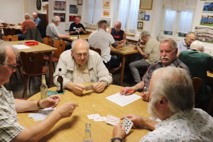 Zum 3. Mal veranstaltete der Spiel- und Sportverein Lardenbach/Klein-Eichen ein Skatturnier in den Sommermonaten. Der Einladung waren diesmal 21 Männer und eine Frau gefolgt. In drei Spielrunden wurde dabei an sechs 3er-Tischen und einem Tisch mit vier Spielern beim Reizen, Stechen und Schmieren um Punkte gespielt. Insgesamt kamen dabei 30383 Punkte zusammen. Mit 2277 Punkten konnte wie schon im letzten Jahr Uwe Höres aus Londorf den ersten Geldpreis gewinnen. Die nachfolgenden mit einem Preis belohnten Plätze belegten mit 2057 Punkten Jürgen Horni aus Langsdorf, Udo Feldbusch (Rüddingshausen) mit 1992, Thomas Rieb (Rüddingshausen) mit 1748 und Volker Kessler aus Beuern mit 1648 Punkten. Die weiteren mit viel Spaß und jedoch am Ende ohne eine Gewinnchance Mitspielenden waren Rainer Lötsch (Freienseen), Lothar Hauk (Allendorf/Lda), Jörg Eimer (Groß-Eichen), Reiner Bleifuß (Weickartshain), Mario Hutfleß (Münster), Kurt Scharmann (Klein-Eichen), Ernst Zimmer (Lardenbach), Wilhelm Bechthold (Allendorf/Lda), Carmen Schmaus (Reiskirchen), Heinz-Joachim Hagenbücher (Weickartshain), Wolfgang Langsdorf (Rockenberg), Reiner Roth (Klein-Eichen), Daniel Träger (Klein-Eichen), Norbert Theiß (Freienseen), Markus Kräter (Grünberg), Karl-Heinz Schlag (Münster) und Karl Steinmüller (Reiskirchen). Bei der vom Vereinsvorsitzenden Stefan Weeke vorgenommenen Siegerehrung wurde zugleich mit Dienstag, dem 30. Dezember um 18.00 Uhr auf den nächsten Preisskat in Lardenbach verwiesen.
