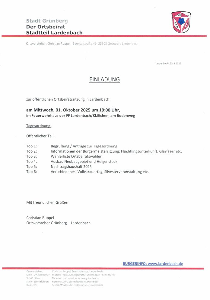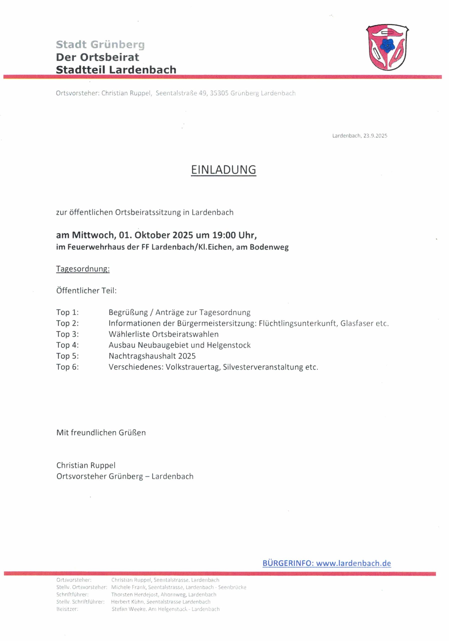 Start _Ankündigungen Einladung Ortsbeiratssitzung Lardenbach Einladung Ortsbeiratssitzung Lardenbach 23. September 2025 192