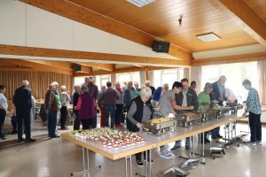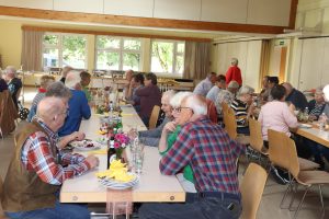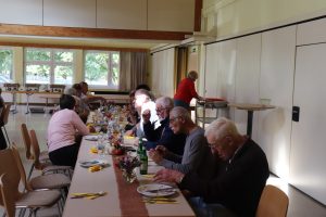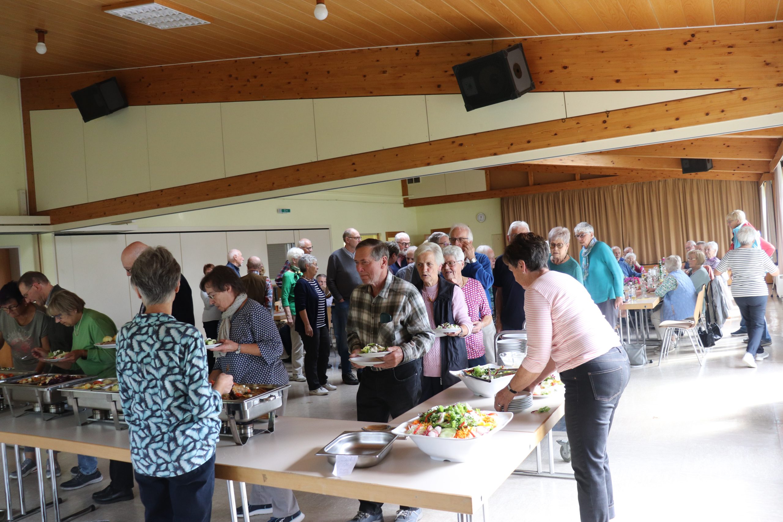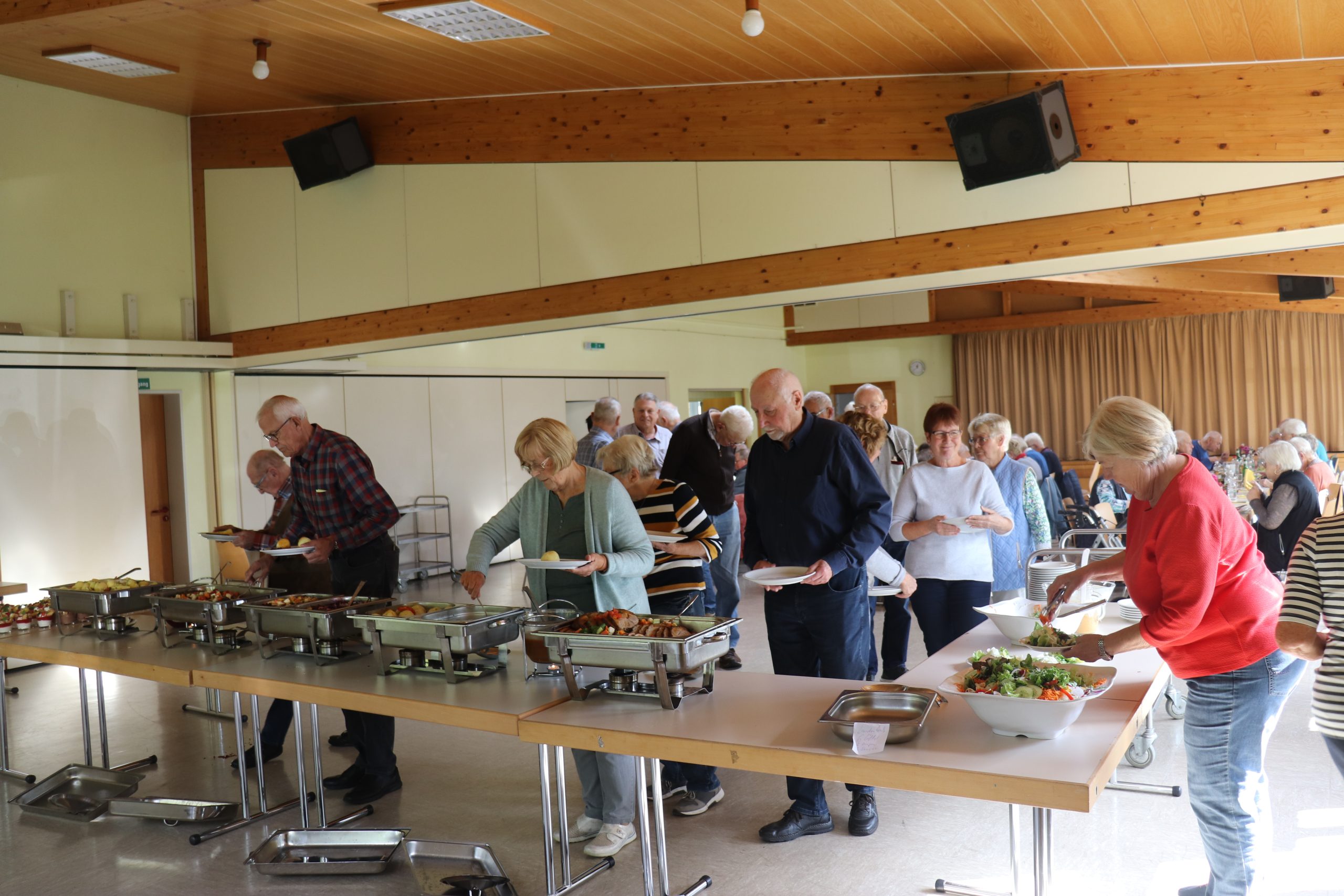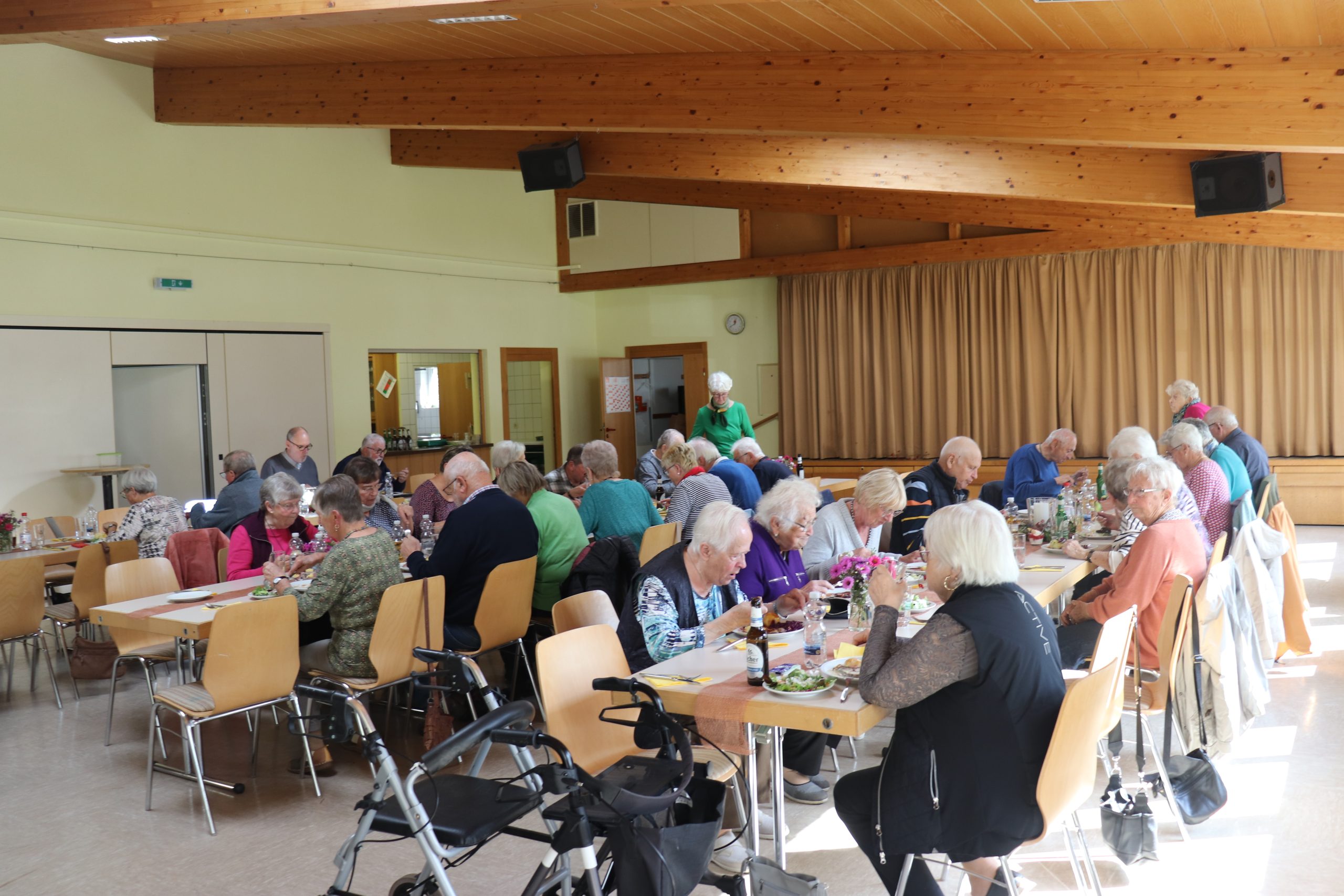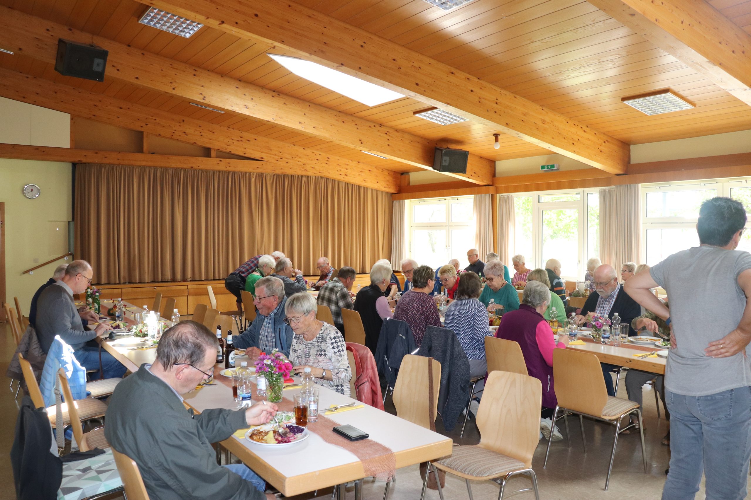 Beim erneut wieder gut angenommenen ersten Treffen nach der Sommerpause stand für die Seniorinnen und Senioren aus Lardenbach und Klein-Eichen wieder ein gemeinsames Mittagessen auf dem Programm. Die 54 Anwesenden genossen dabei das Angebot mit zwei Fleischgerichten. Als Beilage stand neben Kartoffeln und Knödeln auch gemischter Salat, Rotkraut und Meerrettich zum Verzehren bereit. Abgerundet wurde der reichhaltige Mittagstisch mit einer leckeren Süßspeise. Neben dem gemeinsamen Essen nutzten die Besucher auch Begegnung zur regen Unterhaltung und zum Gedankenaustausch.