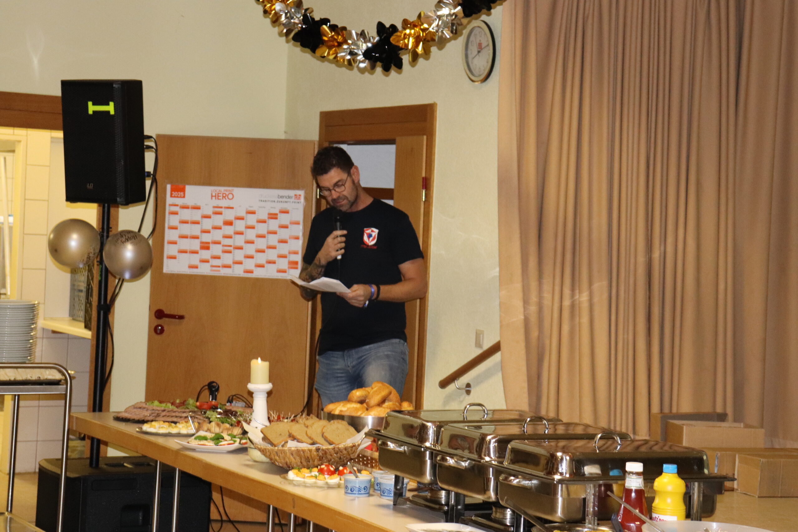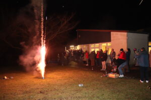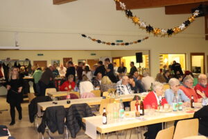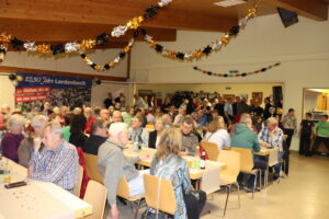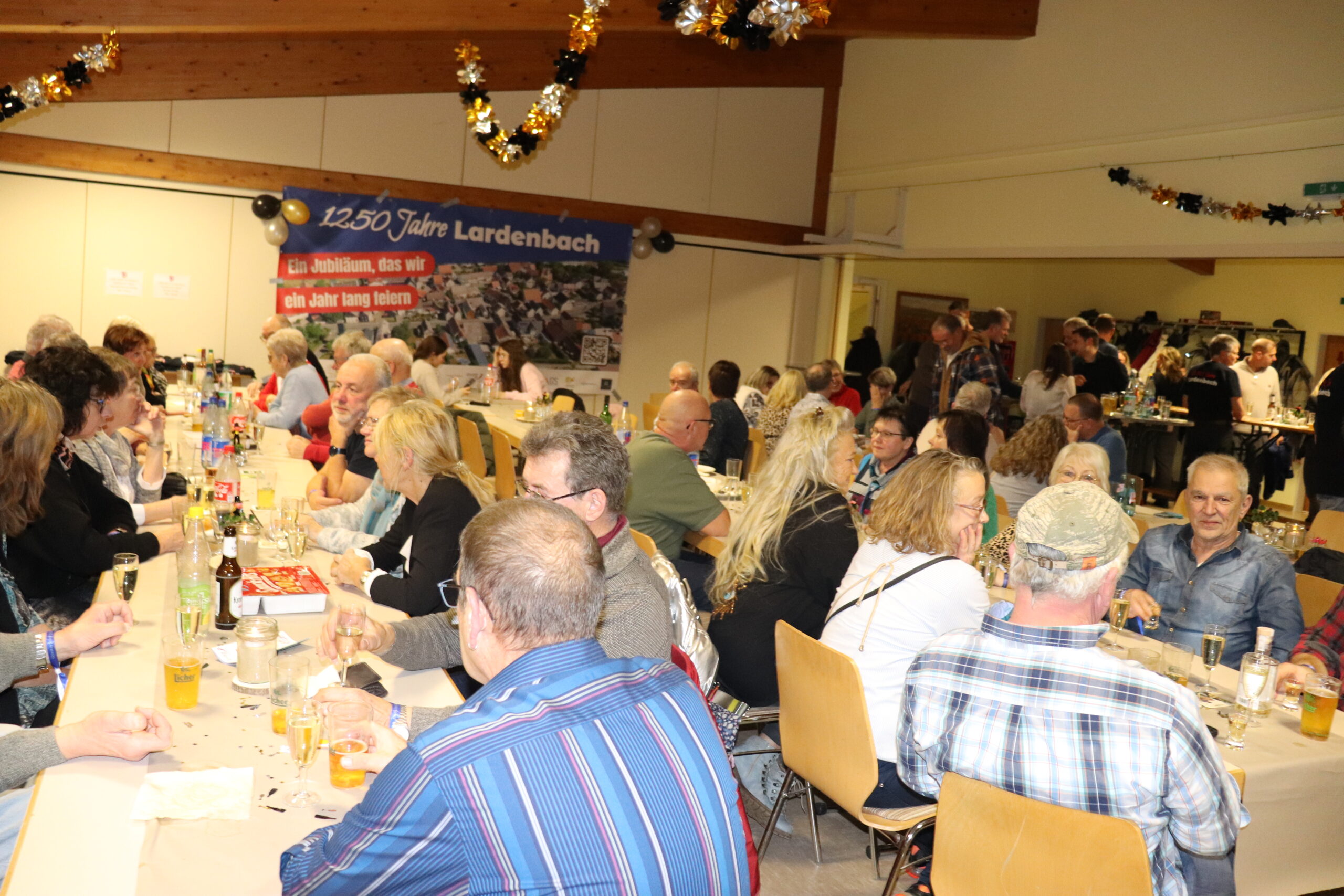 Mit einer zünftigen Silvesterfeier begannen für den Grünberger Stadtteil Lardenbach die Feierlichkeiten zur Ersterwähnung vor 1250 Jahren Anno 776. Für die über 100 mitfeiernden Bewohner aus Lardenbach und Klein-Eichen bot die Eröffnungsveranstaltungen im festlich dekorierten Dorfgemeinschaftshaus einen würdigen Einstand zu den im Jahr 2026 noch weiteren anstehenden Feierlichkeiten. Organisiert vom Ortsbeirat und von den Mitgliedern des Festausschusses stand den Besuchern ein von der örtlichen Metzgerei geliefertes kalt-warmen Buffet zur Stärkung bereit. Ergänzt wurde dieses durch die von zahlreichen Frauen zubereiteten Salate und Beilagen. Im Rahmen der Begrüßung durch Ortsvorsteher Christian Ruppel wurde unter dem Motto „Ein Jubiläum, das wir ein Jahr lang feiern“ ein Werbebanner und das geplante Festprogramm kurz vorgestellt. Eingebunden sind dabei die traditionell jedes Jahr durchgeführten Veranstaltungen wie der Lardenbacher Holzstrich mit der Männerbräut, der Himmelfahrtsgottesdienst, zwei Preisskat-Turniere, ein Fischerfest und das Oktoberfest. Zusätzliche Events sind ein Tischtennis-Turnier, eine Gemarkungswanderung, ein Dorfsingen, ein Dorfflohmarkt, der Ortssporttag, das Apfel- und Pfannenkuchenfest, ein Tag der offenen Sauna und der Lardenbacher Adventstreff. Zudem wird es im November einen Festkommers geben. Ausführliche Informationen zu den einzelnen Veranstaltungen sind durch einen Scan in dem ab sofort öffentlich ausliegenden Flyer erhältlich. Ruppel dankte Nina Böcher und allen bisherigen Unterstützern sowie besonders den zahlreichen Sponsoren. Zugleich stellte er die käuflich zu erwerbenden angefertigten T-Shirts und eine Tasse mit einem Luftbild von Lardenbach vor. In gemütlicher Runde und bei guter Unterhaltung erwarteten die Anwesenden dann den Jahreswechsel. Nach dem gemeinsamen Anstoßen, dem gegenseitig ausgesprochenen guten Wünschen für das Jahr 2026 und vor dem Gebäude verfolgten Feuerwerk feierte man noch bis in den frühen Morgen weiter. Eine Abwechslung wurde auch den Kindern durch das Einrichten einer Spielstätte im kleinen Saal geboten.