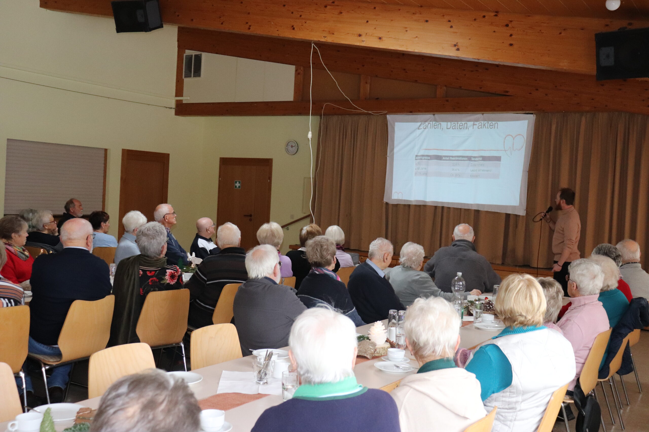 Mit seinem Fazit „Erste Hilfe ist keine Kür, sondern eine Notwendigkeit“ beendete der Rettungssanitäter Marten Faust von der Johanniter-Unfallhilfe seinen Vortrag bei dem monatlichen Treffen der über 50 anwesenden Seniorinnen und Senioren aus Lardenbach und Klein-Eichen. Wie er aufzeigte, ist sie ein entscheidender Schutzfaktor für die Gesundheit, Würde und Unabhängigkeit. Zu Beginn nannte er mit Stürzen, Herzinfarkten Bewusstlosigkeit und Schlaganfällen die am häufigsten auftretenden Notfälle. Bei der Zahlen- und Statistikdarstellung standen die Reanimationen und die Wiederbelebung obenan. Faust stellte die einzelnen Hilfsmaßnahmen vor, wobei das Absetzen eines Notrufes mit an erster Stelle stehe. Erwähnung fanden die einzelnen Hilfsmaßnahmen durch eine Reanimation und die entsprechende Lagerung der verletzten Person. Der besondere Hinweis auf die Notrufnummern und die Vorstellung der Kat-Retter als private Ersthelfer folgten vor dem anschließenden gemeinsamen Kaffee- und Kuchengenuss.