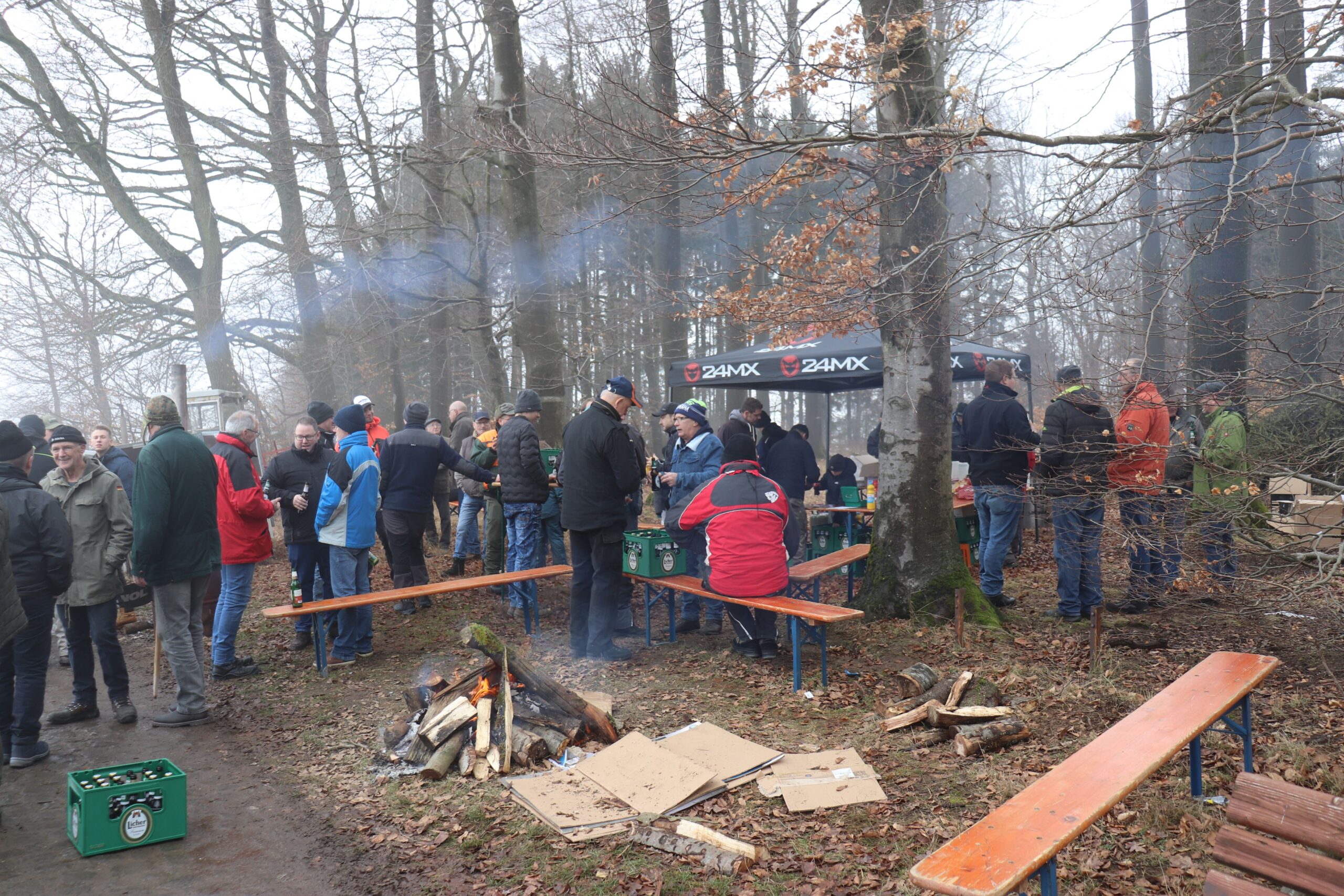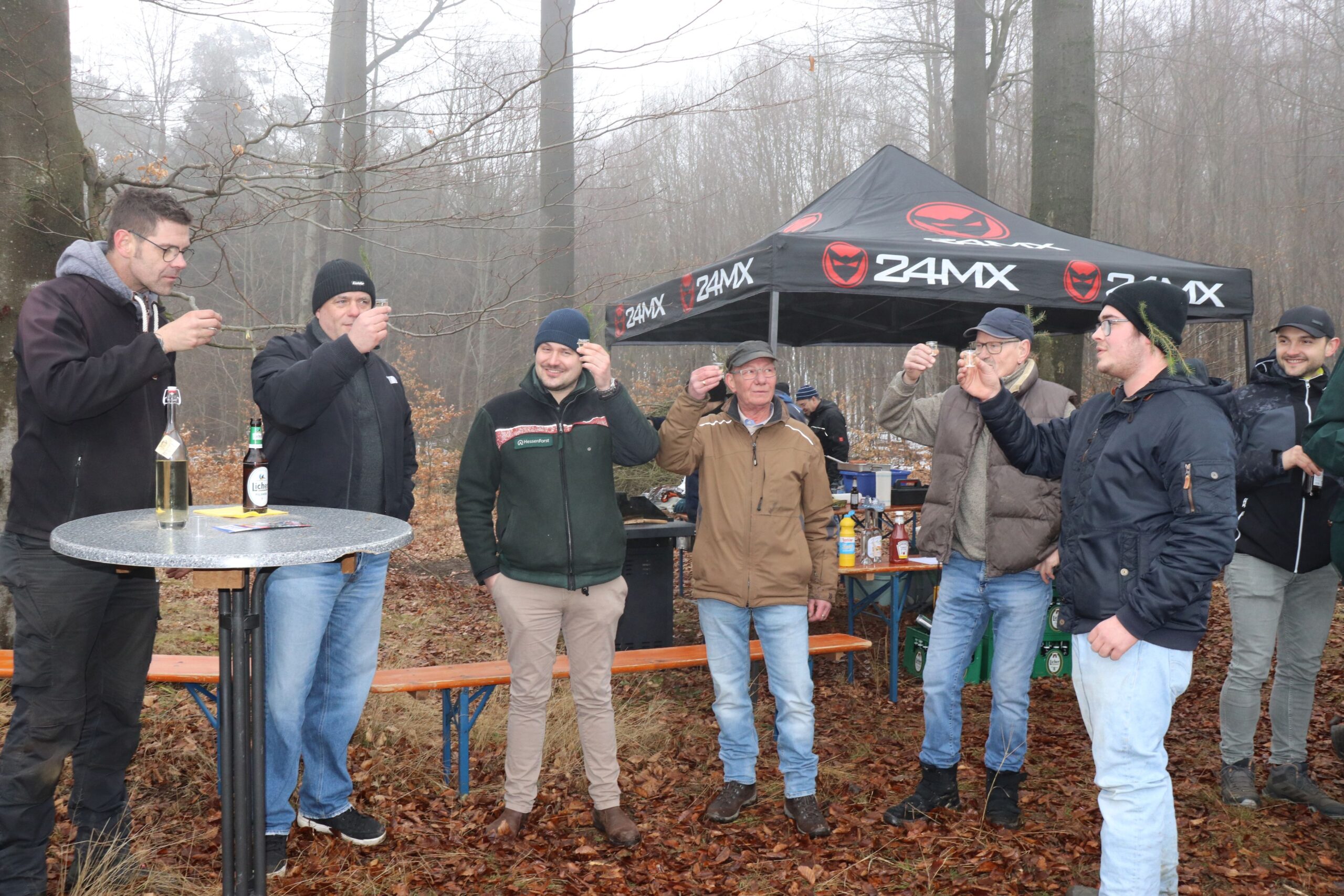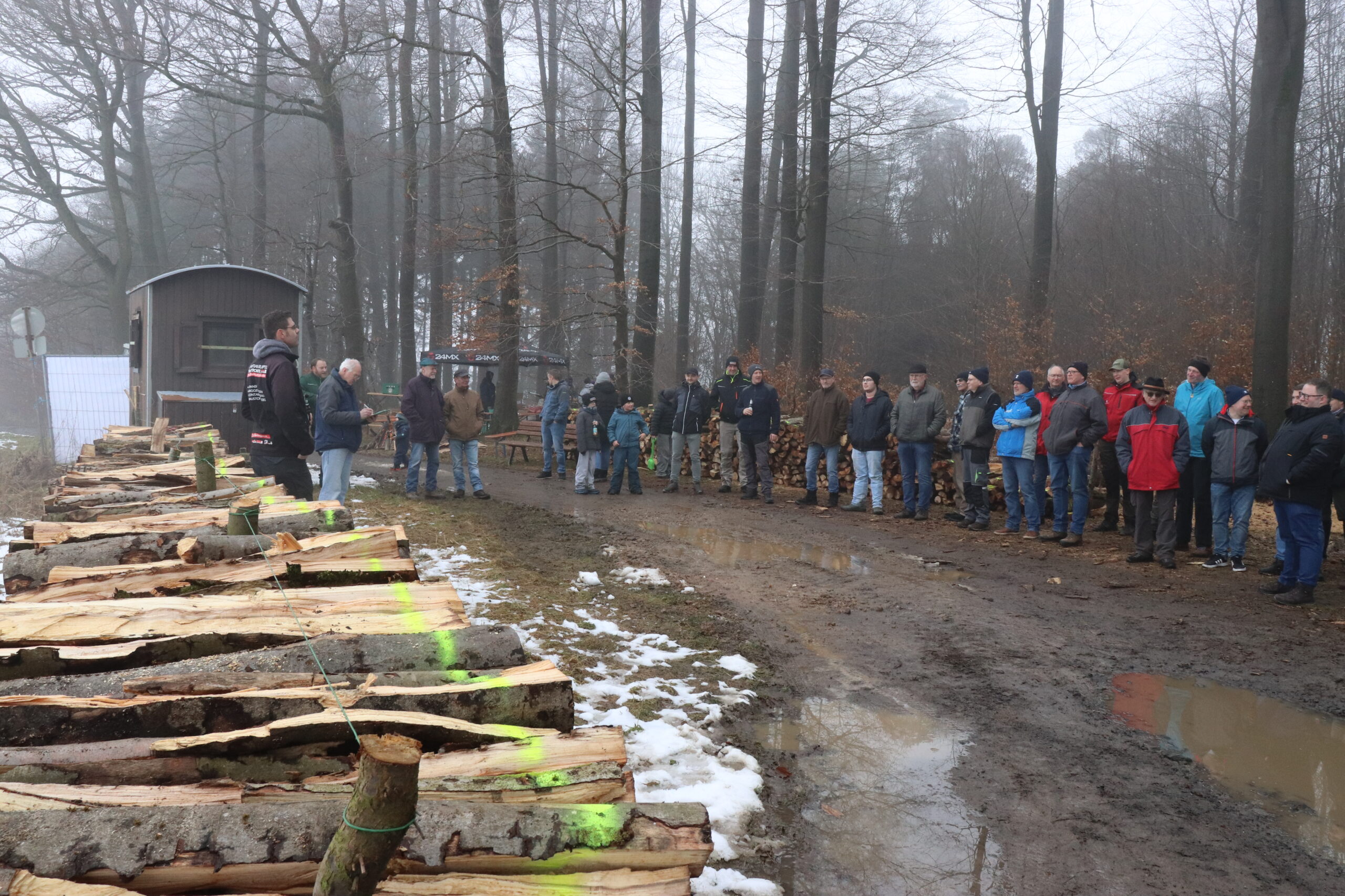 Großes Interesse gab es auch diesmal wieder am Brennholz bei der traditionellen Versteigerung in Lardenbach. Die von Mitgliedern der Freiwilligen Feuerwehr und dem Ortsbeirat Lardenbach aufgearbeiteten 19 Raummeter Buchenholz fanden bei der Angebotsabgabe auch zügig ihre Abnehmer. In Anwesenheit des Grünberger Bürgermeisters Marcel Schlosser, des Kreisdezernenten Frank Ide, den Grünberger Stadträten Lothar Theis und Jürgen Biedenkapp sorgten Ortsvorsteher Christian Ruppel und Schriftführer Karl-Ernst Lind für eine reibungslose Versteigerung. Bis es jedoch mit den Worten „zum Ersten, zum Zweiten und zum Dritten – der Zuschlag geht an..“ zum endgültigen Zuschlag kam, wurde sich zum Vergnügen der Anwesenden immer wieder überboten und damit der Kaufpreis in die Höhe getrieben. Am Ende der Auktion konnte Ortsvorsteher Christian Ruppel gleich fünf neue Mitglieder in die Reihen der Lardenbacher Holzkäufer aufnehmen. Dabei wurden Günter Matheisl, Hannes Wollmerstädt, Paul Berg, Daniel Träger und Gerd Reppe mit einem Fichtenzweig gekürt. Zum Ritual gehörte ebenso noch das mit dem Ortsvorsteher gemeinsame Trinken eines Schnapses. Für die Besucher an der Feuerstelle in der Heidstruth hieß es danach den auch als „Männerbräut“ bekannten Lardenbacher Feiertag zünftig zu genießen. Die eigens hergestellte Holzstrichwurst und der zusätzlich angebotene Burger konnten somit den Hunger stillen. Für das Durstlöschen standen diverse Kaltgetränke und der an einem kalten Wintertag nicht fehlende Schnaps bereit. Bei den zahlreichen unterhaltsamen Gesprächen fand die traditionelle „Männerbräut“ dann nach einem langen Tag auch erst in den späten Abendstunde ihr Ende.