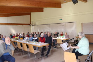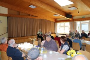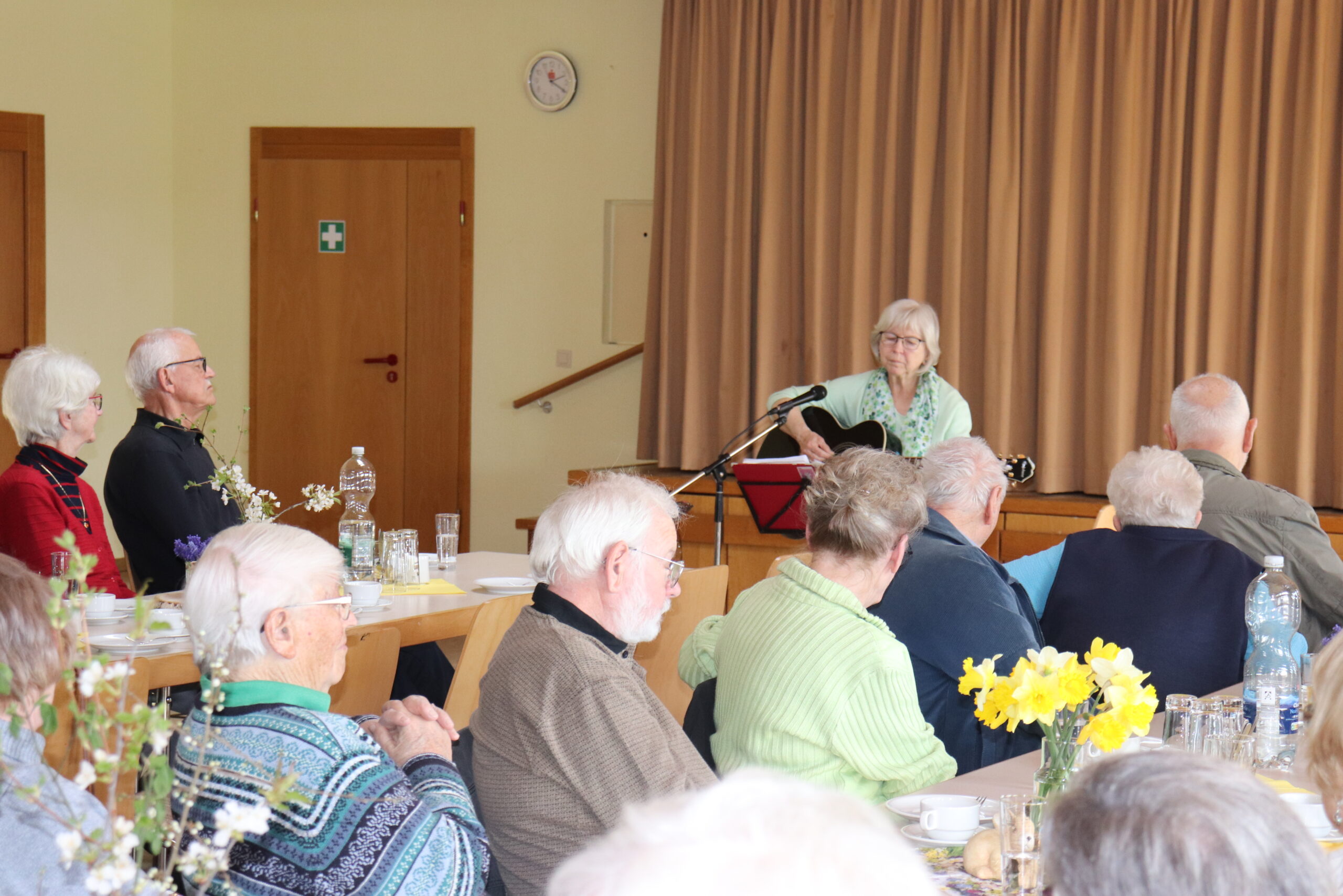 Mit ihren in Gitarrenbegleitung überwiegend selbstgedichteten vorgetragenen Liedtexten erfreute „Lebbe Ridda“ alias Rita Marttern aus Beuern die nahezu 50 Seniorinnen und Senioren aus Lardenbach und Klein-Eichen bei ihrem letzten Monatstreffen. Die Geschichten aus Omas-Zeiten und der Rückblick in die Vergangenheit auf ein im Gegensatz zu heute anderes erlebtes Landleben ließen bei vielen die eigenen Erlebnisse wieder wach werden. Zur amüsanten Unterhaltung bis zum anschließenden gemeinsamen Kaffeetrinken erfreuten weiterhin noch einige Mundartgedichte das aufmerksam lauschende Publikum.
