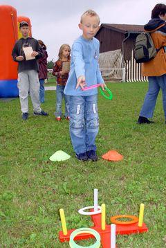 ![]() | Trotz des nicht ganz sommerlichen Wetters beteiligte sich am vergangenen Wochenende eine große Anzahl von Einwohner aus Lardenbach und Klein-Eichen am Ortssporttag des Spiel- und Sportverein Lardenbach/ Klein-Eichen. Begonnen wurde die Veranstaltung am Samstag Nachmittag mit einer Wanderung durch die Gemarkung. Nahezu 60 Teilnehmer starteten dabei an der Schutzhütte und erreichten diese dann auch wieder nach einem Zwischenstopp mit Stärkung an der Fischerhütte des Angelsportvereins Seenbachtal. Der Abend klang danach mit einem gemütlichen Beisammensein aus. Der Sonntag begann für die Kinder und Jugendliche mit einer Olympiade. Bei den angebotenen Disziplinen und Spielen ging es um das Sammeln von Punkten, die dann in entsprechende Preise umgesetzt werden konnten. Mit Begeisterung beteiligten sich die Kids am Torwandschießen, beim Teebeutelweitwurf, beim Ringewerfen, beim Büchsenwerfen, beim Zielspritzen und beim Klettballfangen. Unter allen Teilnehmern wurden am Ende weitere wertvolle Preise verlost. |