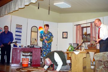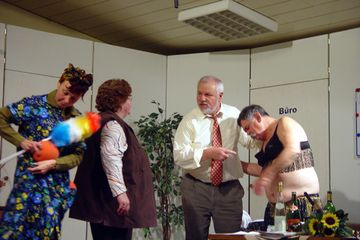 Zu den weiteren hervorragenden Laienschauspielern zählten Karlheinz Hollederer und Eduard Schmidt, die die beiden besten Freunde des Bürgermeisters Fritz und Eugen verkörperten. In die Rolle von Lisas Freund Peter Bacher schlüpfte Marco Biedenkopf, der zudem noch mit seinem Auftreten als Scheich Achmed in dem Stück für viel Verwirrung sorgte. Als Garanten gewährten Ingrid Reinert als Souffleuse und Gerhard Ruppel als Tontechniker ihre Unterstützung für einen reibungslosen Programmablauf. Der Erlös der diesjährigen Vorstellung soll wie auch in der Vergangenheit wieder gemeinnützigen bzw. karitativen Zwecken zur Verfügung gestellt werden. Die Verköstigung des am Ende nicht mit Beifall geizenden Publikums hatten einige Mitglieder des Obstbau- und Keltervereins Lardenbach/Klein-Eichen übernommen.