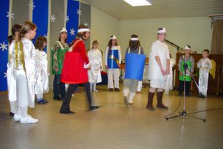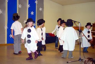 So tanzten zu Beginn sieben Schneefrauen in einem Singspiel auf der Bühne. Fünf Wichtel folgten diesen Beitrag und gewährten dabei dem erkrankten Nikolaus ihre Hilfe. Unter der Leitung von Minette Kraft präsentierten zunächst die „Minis“ der Sing-, Spiel- und Spaßtruppe das Weihnachtslied „O Tannenbaum“. Die „Maxis“ zeigten sich international und trugen drei Lieder in drei Sprachen vor. Ein besonderer Höhepunkt war das vorgetragenen Trommellied, das zudem von den jüngsten Truppenmitgliedern schauspielerisch in Szene gesetzt wurde.