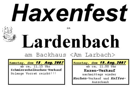 Veranstaltungshinweis der Kirchengemeinde Lardenbach/Klein-Eichen