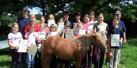Ein umfangreiches Testwochenende stand kürzlich zahlreichen Pferden und Reitern in Klein-Eichen bevor. Bei gleich mehreren Aufgaben wurden die Reitschülerinnen und Reiter von der beiden Klein-Eichener Reitlehrerinnen Heike Zwick und Simone Faust gefordert. Auf ihrem Reitgelände in Lardenbach gab es ein mit einer Prüfung zum Basiswissen, einer Führprüfung, einer Schnitzeljagd und weiteren Reiterspielen ein besonderes Hofturnier. Zudem wurde von den beiden Ausbilderinnen eine Gelassenheitsprüfung durchgeführt.