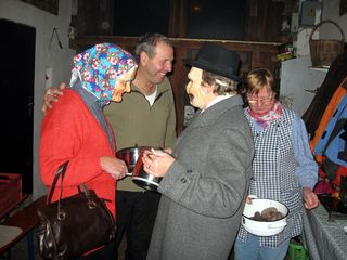 Bei der Verköstigung der Frikadellen, dem Wellfleisch und weiteren Leckerbissen mit entsprechenden Beilagen wie Sauerkraut, Meerrettich und Hackfleischsoße durfte natürlich nicht das Bier und der Schnaps fehlen. Für die Erstellung des traditionellen „Schlachtschnapses“ hatte sich Reiner Roth als „Schnapsmischer und Vorkoster“ zur Verfügung gestellt. Für das Ambiente und die Speisezubereitung standen die Partnerinnen der langjährigen Sportler hilfreich zur Verfügung. Ein Höhepunkt des Schlachtessens war das Erscheinen von zwei Fleischmännchen. Wie in alten Zeiten kamen die beiden verkleideten Gestalten mit ihren leeren Töpfen und ließen sich diese mit den Leckerbissen füllen.