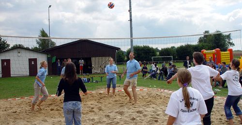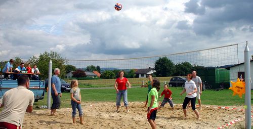 die dann auch den ganzen Tag über vollends ausgelastet war. Zur Belohnung gab es zum Abschluss für alle Kinder für die Teilnahme dann noch zahlreiche Geschenke. Großen Zuspruch bei klein und groß fand erneut das Beachvolleyballturnier. Mit den „61er mit Jungspund“, den „Holler di Boller“, dem „Invalidenteam“, dem Beach-Gesocks“, dem „Tornadoteam“, den „unglaublich Besseren“, der „Pizzabande“ und den „Schnorrern“ beteiligten sich gleich neun Mannschaften an den in zwei Gruppen ausgetragenen Spielen. Als Sieger erwies sich am Ende das „Invalidenteam“ vor dem „Beach-Gesocks“. Das kleine Endspiel gewannen die „61er mit Jungspund“ gegen das Team „Holler di Boller“.