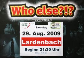 | Rahmen des 75-jährigen Jubiläums der Freiwilligen Feuerwehr Lardenbach wird die im heimischen Raum überaus gut bekannte Cover-Band einen Live-Auftritt absolvieren. Die sechs Musiker Daniel, Philipp, Jan, Chris, Andreas, Michael und Sängerin Yvonne wollen dabei am Samstag, 29. August 2009 im Festzelt des Grünbergers Stadtteiles Lardenbach so richtig einheizen. Die in der Region schon mehrfach aufgetretene stets gutgelaunte Band sorgte beim Bockbierabend des letztjährigen Grünberger Gallusmarktes für eine überwältigende Stimmung. |