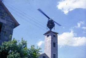 ![]() | Ihre Freiwillige Hilfe gewährten Feuerwehrangehörige und Bevölkerung in der Vergangenheit ebenfalls beim Bau und der Sanierung des Feuerwehrgerätehauses. Das im Mai 1963 eingeweihte Gebäude mit Fahrzeughalle, Schlauchturm und obenliegenden Räumlichkeiten für die Gemeindeverwaltung wurde überwiegend durch Eigenleistung erstellt. Als eine Sensation entpuppte sich dabei das Aufsetzen des Turmdaches mit einem amerikanischen Militärhubschrauber. Auch die im Laufe der Zeit anstehenden Sanierungen konnten durch die Mithilfe von Feuerwehrangehörigen kostengünstig durchgeführt werden. |