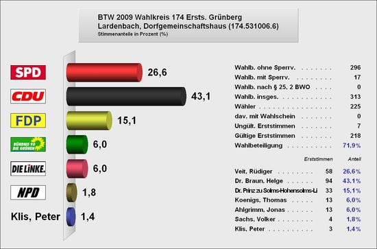 679/1448 | Lardenbach.Archiv.2009. September 26. September 2009 509 Bundestagswahl – 1. Stimme Bundestagswahl – 2. Stimme