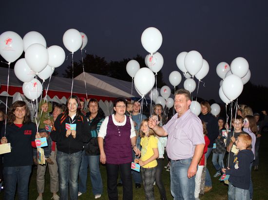 Ein außergewöhnliches Vergnügen für die jüngsten Besucher war am vergangenen Samstag das 60-jährige Jubiläum der Lardenbacher Landmetzgerei Kielbassa. Der 1949 gegründete Handwerksbetrieb feierte mit zahlreichen Kunden, Geschäftspartnern, Verwandten und Freunden und bot dabei besonders den jüngsten Gästen viel Abwechslung. So konnten sich die Kids an einer Hüpfburg so richtig austoben. Großes Interesse fand das Kinderschminken. Hierbei betätigen sich Diana und Jana Reining als gekonnte Künstlerinnen. Ein Höhepunkt für die Kleinen war das Steigenlassen von Luftballons in den abendlichen Himmel. Zusammen mit seiner Ehefrau Beate gab dabei Metzgermeister Hans-Georg Kielbassa das Startkommando. Zur Freude der Kinder wurden sie reichlich mit Speis und Trank verköstigt. Mit einem deftigen Schlachtessen hatte das Team der Landmetzgerei auch für die Erwachsenen eine Mahlzeit parat. Zudem waren am Nachmittag noch Kaffee und Kuchen im Angebot. Unser Bild zeigt das Ehepaar Kielbassa mit Tochter und weiteren Kindern beim Starten der Ballons.