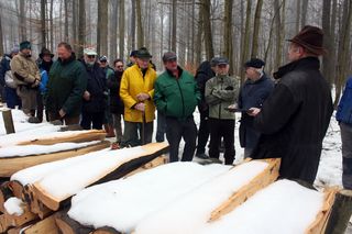 Erfreut über die rege Beteiligung an der Holzauktion und über den guten Besuch bei der anschließenden „Männerbräut“ zeigte sich am vergangenen Samstag der Lardenbacher Ortsvorsteher Jürgen Hofmann. Als willkommene Ehrengäste begrüßte er den Grünberger Bürgermeister Frank Ide und dessen Stellvertreter Erster Stadtrat Hans Pigors. Weiterhin nahmen Stadtrat Carsten Mark Langohr, Forstoberinspektorin Monika Grandefeld sowie der Grünberger und mit Lardenbach eng verbundene ehemalige Erster Stadtrat Alfred Hammerschick an der Veranstaltung teil. Die auch als „Lardenbacher Männerfeiertag“ bekannte Holzversteigerung fand traditionsgemäß erneut im Lardenbacher Pfortwald statt.