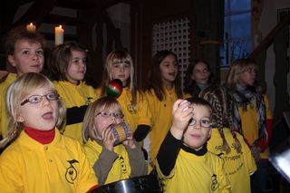 Viel Applaus gab es für den gemeinsamen Auftritt der Männer und der „Maxis“ der Sing-, Spiel- und Spaßtruppe mit dem Chor „Fröhliche Weihnacht überall“. Nach einer Weihnachtsgeschichte von Willi Rummelsberger setzten einige Akteure des Kinderchores mit „Hört der Engel helle Lieder“ das Programm fort. Diesen folgten die „Minis“ mit „Ihr Kinderlein kommet“. Der gesamte Kinderchor erfreute vor dem Gedichtvortrag „An Dezembertagen“ von Heike Hofmann mit dem spanischen Weihnachtslied „Feliz navidat“. Nach dem gemeinsamen Singen „Leise rieselt der Schnee“ und dem Auftreten der „Maxis“ mit Nikolaus, Nikolaus“ sprach Kinderchorleiterin Minette Kraft Dankes- und Abschiedsworte.