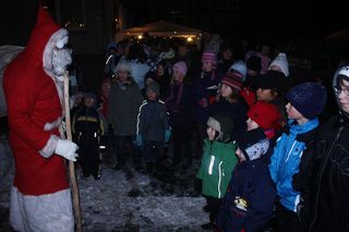 | Bei dem diesmal nicht mit ganz so vielen Ständen ausgestatten Adventstreff bot Werner Zimmer noch Motivtassen und Fotokarten mit Abbildungen des Klein-Eichener Dorfmittelpunktes und der Kirchen aus Klein-Eichen und Lardenbach an. Diese sind weiterhin noch bei dem Klein-Eichener Ortsvorsteher zu bekommen. Um die Wartezeit auf den mit Spannung erwarteten Nikolaus zu verkürzen, nutzten viele Kinder eine angebotene Filmvorführung mit dem Rentier Rudolf. Der Nikolaus verteilte dann zusammen mit dem Christkind Katharina die Geschenke an die etwa 80 Kinder. |