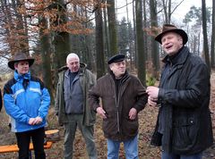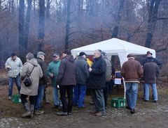 | Diesmal steckte Ortsvorsteher Hofmann den Tannenzweig dem langjährigen Besucher und in diesem Jahr erstmals Brennholz steigenden Ersten Stadtrat Hans Pigors an. In der freien Natur wurden dann bis in die späten Abendstunden die vom Männergesangverein „Eintracht“ Lardenbach/Klein-Eichen angebotenen Grillwürstchen und Getränke genossen | ![]() |