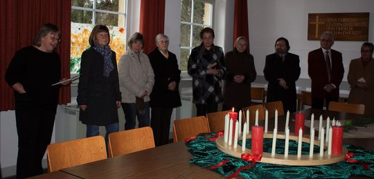 Tägliches Ritual aus dem Jahre 1839 bis zum 23. Dezember allabendlich im evangelischen Gemeindehaus – Hölzerner Kranz von Familie Reining gespendet