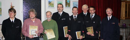 Nach dem Gedenken an das verstorbene Mitglied Otto Parma folgte der für beide Vereine zusammengefasste Jahresbericht. Vorsitzender Lind ging dabei auf die steigenden Mitgliederzahlen, auf die Beteiligung bei der örtlichen Müllsammlung und auf die Unterstützung des Himmelfahrtsgottesdienstes ein. Erwähnung fanden die Besuche beim Steinbruchfest der Grenzgrabenspritzer und bei den Feuerwehrfesten in Laubach, Lumda und Rüddingshausen. Zudem weilte eine Abordnung auch beim Feuerwehrfest der österreichischen Partnerwehr Lehenrotte. Eine weitere Mitgliederbeteiligung gab es bei den Grünberger Ferienspielen, beim Oktoberfest und beim Lardenbacher Adventstreff. Unternommen wurde von Vorstandsmitgliedern beider Wehren eine Tageswanderung in der Rhön. Glückwünsche zur Silberhochzeit wurden dem Mitglied Hans-Joachim Siebel überbracht. Dem verstorbenen Mitglied Otto Parma gedachte man bei der Trauerfeier. Lind dankte abschließend allen Mitgliedern, Helfern, Spendern und Vereinsvorständen für die geleistete Arbeit und Unterstützung. Die Kassenwarte Andreas Ruppel (Lardenbach) und Werner Zimmer (Klein-Eichen) trugen die entsprechenden Kassenberichte vor. Zusammen mit den weiteren Vorstandsmitgliedern wurden sie auf Antrag der Kassenprüfer Wilfried Peitz und Simon Martin Repp (Lardenbach) und Simon Martin Repp und Michael Münscher (Klein-Eichen) in getrennten Abstimmungen einstimmig entlastet. Die beiden Vereinsvorsitzenden führten danach Ehrungen für langjährige Mitgliedschaften durch. Marco Böcher und Carsten Mark Langohr erhielten dabei durch den Vorsitzenden Karl-Ernst Lind für 25-jährige Vereinszugehörigkeit Urkunde und Vereinsnadel in Silber. 40 Jahre Mitglied der Feuerwehr Lardenbach waren Dieter Ruppel und Ernst Zimmer. Beiden wurde eine Ehrenurkunde verliehen. Dem verhinderten Mitglied Reiner Roth wird die Urkunde und Vereinsnadel in Gold für seine 50-jährige Mitgliedschaft nachgereicht. Für die 30-jährige Vereinstreue zur FF Klein-Eichen wurden durch die Vorsitzende Simone Faust Werner Zimmer und der nicht anwesende Frank Hollederer geehrt. Eine Urkunde erhielt zudem Klaus Hansel für 40 Jahre Vereinstreue. Gar 50 Jahre ist Theo Hermann Mitglied der Feuerwehr Klein-Eichen. Dem verhinderten Jubilar wird die Ehrung nachgereicht. Bei den Vorstandswahlen fungierte Karl-Ernst Lind als Wahlleiter. Die Besetzung der gesamten Vorstandsämter erfolgte mit einstimmigen Voten. So übernimmt Andreas Ruppel für die nächsten fünf Jahre den Vereinsvorsitz. Dessen Stellvertreter ist Armin Schombert. Zum Schriftführer wurde Timo Faust und zum Kassenwart Reiner Felsing gewählt. Als Beisitzer gehören Vanessa Rühl, Jens Daniel und Michael Ruppel dem neuen Vorstand an. Die nächste Kassenprüfung werden nochmals Simon Martin Repp und der neu gewählte Revisor Reinhard Mölcher vornehmen.