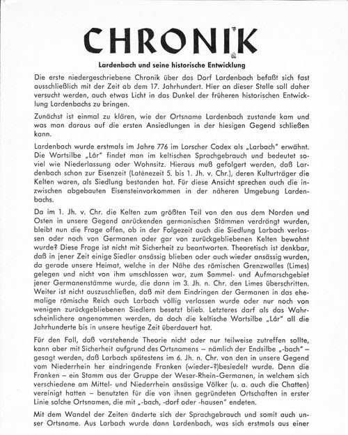 (aus der Festschrift „1200 Jahre Lardenbach“ von 1976)