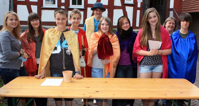 Zu den weiteren Rateteams zählten auch die von Pfarrerin Ingrid Volkhardt-Sandori betreuten Konfirmanden aus Sellnrod und Altenhain. Ziel des von Pfarrerin Cordula Michaelsen entsprechend umgeschriebenen wie auch zusammen mit Kirchenvorsteherin Mareike Repp unterstützten Spieles sollte das Herausfinden der Auferstehung von Jesu Christi sein. An den einzelnen Stätten rund um das Lardenbacher Gotteshaus und dem evangelischen Gemeindehaus galt es für die derzeitigen Konfirmanden die notwendigen Informationen einzuholen und am Ende dann den drei Jüngern Petrus, Matthäus und Jakobus die Nachricht von der Auferstehung ihres Herrn und Meisters Jesu zu überbringen. Nachdem alle Teilnehmer am Ende das Rätsel gelöst hatten, gab es noch ein gemütliches Beisammensein. Die durch den gelungenen Auftritt inspirierten Mitwirkenden beabsichtigen nach den Sommerferien das Spiel im Rahmen eines geplanten Gemeindenachtmittages „Anno 34“ dann auch speziell für erwachsene Gemeindeglieder aus dem gesamten Kirchspiel zu wiederholen.