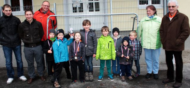 So freuten sich diesmal Vereinsvorsitzender Kurt Scharmann und die Jugendtrainer und Betreuer Stefan Weeke und Benjamin Schäfer über die Unterstützung von 500 Euro. Neben der aktiven Mitgestaltung des Spiel- und Sportvereins Lardenbach/Klein-Eichen, des Obstbau- und Keltervereins Lardenbach/Klein-Eichen, des Tischtennisclubs Ilsdorf/Lardenbach und der Freiwilligen Feuerwehr Lardenbach/Klein-Eichen sorgten noch ein privater Waffelverkauf und einige Strickerinnen aus dem Pappelweg für den Überschuss. Zudem unterstützten dankenswerter Weise wieder zahlreiche örtliche und aus der Region kommende Gewerbetreibende erneut den Adventstreff mit Geld- und Sachspenden. Somit konnten auch im vergangenen Jahr wieder alle anwesenden Kinder ein Geschenk vom Nikolaus erhalten. Zum Gelingen der Veranstaltung hatten auch die Kinder der Sing-, Spiel- und Spaßtruppe unter ihrer musikalischen Leiterin Minette Kraft und der Männergesangverein unter Dirigent Ottmar Hasenpflug die von Heike Hofmann moderierte Eröffnung in der Lardenbacher Kirche mitgestaltet. Ein weiterer Höhepunkt war der Auftritt der Jagdhornbläser unter der Leitung von Otto Biedenkopf mit ihren weihnachtlichen Klängen. Unser Bild zeigt einen Teil der von einem Jugendturnier erfolgreich mit einem Pokal zurückgekehrten Jugendfußballer mit ihren Betreuern Stefan Weeke, Benjamin Schäfer, dem Vereinsvorsitzenden Kurt Scharmann (alle links) und Andrea Schneider, sowie dem Gesangvereinsvorsitzenden Karlheinz Erdmann (re) bei der Spendenübergabe.