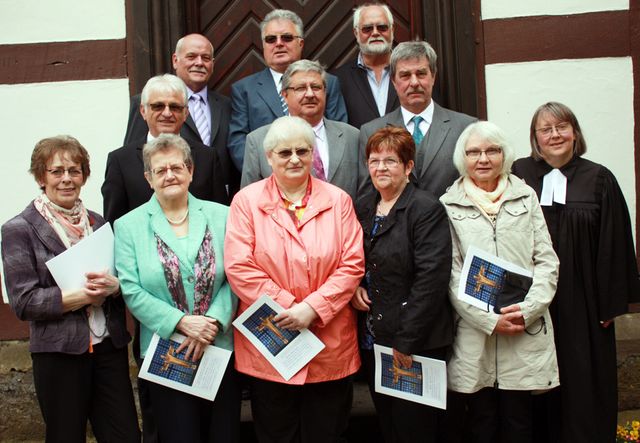 Für den einen oder anderen war das Feiern ihrer goldenen Konfirmation ein erfreulicher Nebeneffekt, um sich nach vielen Jahrzehnten wieder einmal zu sehen. So trafen sich am vergangenen Pfingstmontag elf Konfirmandinnen und Konfirmanden des Jahres 1963 in der Lardenbacher Kirche zur erneuten Einsegnung durch Pfarrerin Cordula Michaelsen. Die aus Lardenbach, Ilsdorf und Weickartshain kommenden Jubilare waren vor 50 Jahren von Pfarrer Hermann Repp in der Kirche in Lardenbach und im Gotteshaus in Weickartshain konfirmiert worden. Das Jubiläum zur silbernen Konfirmation wurde vor 25 Jahren nicht gefeiert. So war die Freude der Lardenbacher Konfirmanden Erna Hassinger, geb. Heckmann, Elke Schätzle, geb. Berg, Karlheinz Erdmann, Wolfgang Kauß, Norbert Keller, Reinhold Keller und Ernst Ruschig groß, sich nach fünf Jahrzehnten mit ihren Weickartshainer Mitkonfirmanden Hildegard Hock, geb. Rahn, Jutta Schröder, geb. Trüller und Helmut Schmidt wieder zu treffen. Anwesend war auch Ilse Olbrich, geb. Rock aus dem damals zum Lardenbacher Kirchspiel zählenden Ilsdorfer Ortsteil Solms. Die ebenfalls vor 50 Jahren eingesegneten Konfirmanden Werner Bast (Ilsdorf) und Dieter Degenhardt (Weickartshain) nahmen an der Feier nicht teil. Gedacht wurde an die bereits verstorbene Alterskameradin Hedwig d´Amour aus Weickartshain. Bei dem anschließenden gemütlichen Beisammensein mit Mittagessen und Kaffeetrinken in der Lardenbacher Gaststätte Dietz wurden wieder viele Erinnerungen an die Vergangenheit wach. Bei den rückblickenden Erzählungen kamen natürlich auch so manch Anekdote und der eine oder andere nicht immer lustige Streich ans Tageslicht. Unser Bild zeigt die teilnehmenden Jubilare mit Pfarrerin Cordula Michaelsen.