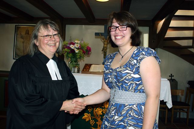 Aus beruflichen Gründen legte Mareike Repp als seitherige Kirchenvorsteherin der Kirchengemeinde Lardenbach/Klein-Eichen ihr Amt nieder. Pfarrerin Cordula Michaelsen sprach zum Abschluss des Gottesdienstes am vergangenen Sonntag den besonderen Dank aus. Die seit 2009 dem Kirchenvorstand angehörende Kirchenvorsteherin brachte sich als Mitarbeiterin zudem noch viele Jahre mehr beim Kindergottesdienst als Betreuerin ein. Pfarrerin Michaelsen würdigte in ihren Dankesworten die Kreativität und guten Ideen, die fleißigen Hände und die begeisternde Lebensfreude von Repp. Sie wünschte der Ausscheidenden auf dem weiteren Lebensweg alles Gute und Gottes Segen und überreichte zugleich zum Dank ein Geschenk.