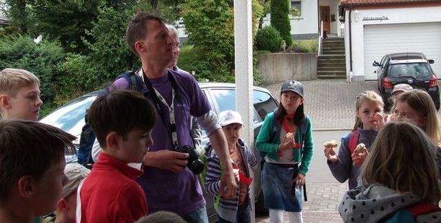 Dieter Langohr führte 25 Kinder und zwei Betreuer zu Bienenständen in Lardenbach und berichtete von seinen Bienen. Dabei ging er besonders auf die Bienenleistungen zum Nutzen von Mensch und Natur ein. Bienen sind ein wichtiges Bindeglied in vielen natürlichen Lebensgemeinschaften. Bei ihrem Flug von Blüte zu Blüte übernehmen sie ganz nebenbei auch die Bestäubung der Blüten. So sorgen sie bei Wild- und Nutzpflanzen (Obstbäume) für reichen Fruchtansatz und sichern damit auch Wildtieren die Nahrungsgrundlage. Er erklärte, dass zu einem Bienenvolk eine Königin, mehrere Hundert Drohnen und etwa 40.000 Arbeiterinnen gehören. Das Interesse war geweckt und es ergaben sich viele Fragen über die einzelnen Zusammenhänge und zu der spannenden Welt unserer Bienen.