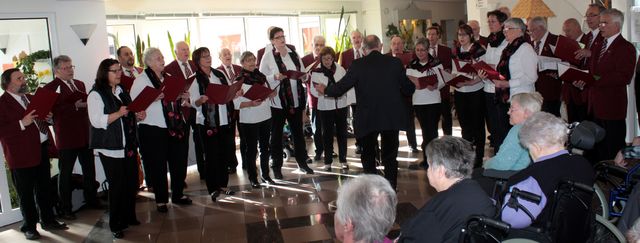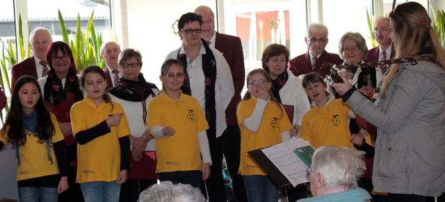 Schon nicht mehr wegzudenken ist in der Geschichte des Männergesangvereins “Eintracht“ Lardenbach/Klein-Eichen und des Seniorenheimes „Am Grünen Berg“ in Grünberg der alljährliche Auftritt zur Freude der dortigen Bewohner am Karfreitag. Diesmal bot der Grünberger Stadtteilverein mit den Darbietungen des Kinderchores unter der Leitung von Stefanie Rohn zugleich noch eine weitere Überraschung. So wurden im Foyer des „Haus der Senioren die knapp 30 Sängerinnen und Sänger des Männer- und Gemischten Chores sowie die sechs Kinder der „Sing-, Spiel- und Spaßtruppe schon sehnlichst erwartet. Unter der Leitung von Chorleiter Ottmar Hasenpflug begann nach der Begrüßung durch den Heimmitarbeiter Karl-Otto Bingmann und einem Grußwort des Vereinsvorsitzenden Willi Rummelsberger der Gemischte Chor mit den Liedern „Tiriomba“ und „Hans bleib da“. Eine weitere Darbietung folgte mit dem Lied „Irischer Frühling“. Innerhalb der musikalischen Vorträge unterhielt der Sangesfreund Gerhard Pernak mit den Gedichten „Hoffnung“ von Emanuel Geibel und „Frühlingsankunft“ von Heinrich August Hoffmann von Fallersleben das dankbare und mit Applaus nicht sparenden Publikum. Für viel Abwechslung sorgte der diesmal wegen der Ferien mit nur sechs Mädchen und Jungen aufgetretene Kinderchor. Mit den rhythmisch überzeugenden Liedern „Song von mir“, „Rock my Soul“ und „Ich lieb´ den Frühling“ konnten sie vollends überzeugen. Den musikalischen Abschluss vor den Dankesworten von Bingmann und den besten Wünschen für die Zukunft durch den Vereinsvorsitzenden Rummelsberger machte dann der Männerchor mit dem teilweise von den Heimbewohnern mitgesungenen Lied „Haselnuss“.
