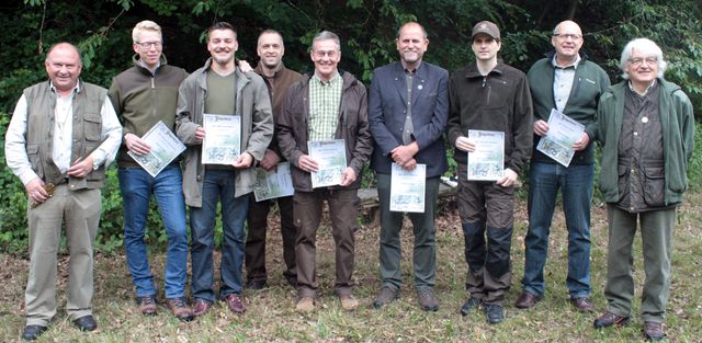 Schon zur Tradition gereift ist das alljährliche Sommerfest der Jägervereinigung Oberhessen. Gefeiert wird dabei auf dem Steinbruchgelände auf dem „Hilgesberg“ und in der Lardenbacher Grillhütte. Begrüßen konnte Vorsitzender Helmut Nickel neben einer Anzahl von Vereinsmitgliedern auch weitere Gäste und Einwohner aus Lardenbach. Er dankte dabei auch allen Helferinnen und Helfern bei der Vorbereitung und der Durchführung des Festes. Sein Dank galt auch den Spendern der Preise für die Tombola. Neben dem Angebot von Speis und Trank gab es in diesem Jahr diese speziell für die Vereinsmitglieder ausgelobte Tombola mit zahlreichen wertvollen Preisen. Nach dem schnellen Losverkauf fanden die zwanzig Preise umgehend einen neuen Eigentümer. Für sieben Jungjäger gab es mit dem Jägerschlag im Rahmen dieser Veranstaltung einen ganz besonderen Höhepunkt. Das alte Brauchtum in freier Natur stammt aus jener Zeit, wo das Jägerhandwerk noch mit einer 3-jährigen praxisbetonten Lehre in der Hundeausbildung, im Schießen und in jagd- und forstlichen Ausbildung erlernt wurde. Heute steht jedoch mit Ausnahme von der Schießausbildung die Theorie im Vordergrund. Prüfungsfächer sind dabei das Jagdrecht, die Wildtierkunde, der Jagdbetrieb und das Hundewesen, die Wildhege und der Naturschutz. Nach Ende der Ausbildung ist der Jägerschlag auch heute noch eine ehrenhafte Aufnahme in die Jägerschaft. Mit der Formel „der erste Schlag soll dich zum Jäger weih ‘n, der zweite Schlag soll dir die Kraft verleih`n zu üben stets das Rechte, der dritte Schlag soll dich verpflichten, nie auf Jägerehre zu verzichten“ und drei Schlägen mit dem Waidblatt auf die Schultern erfolgte diese Prozedur diesmal für die erfolgreichen Jungjäger Alexander Fröhlich (Berlin), Günter Hoffmann, (Laubach), Michael Lücking (Riedstadt), Michael Johne (Friedberg), Christian Sommerlade (Nieder-Ohmen), Milan Carlo Marck (Linden) und Heiko Rahn (Altenhain). Der Jägerschlag wurde mit Unterstützung durch den 2. Vorsitzenden Dieter Cors durch den Vereinsvorsitzenden Helmut Nickel vorgenommen.