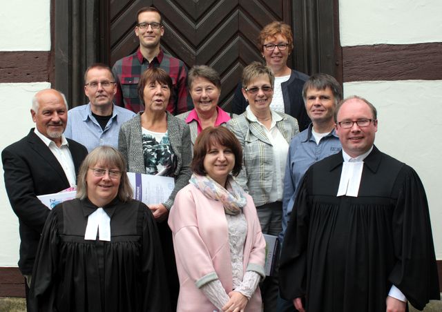 In einem feierlichen Abendmahls-Gottesdienst wurden am vergangenen Sonntag drei seitherige Kirchenvorsteherinnen und Kirchenvorsteher der Kirchengemeinde Lardenbach/Klein-Eichen verabschiedet. Gleichzeitig erfolgte für die am 26. April 2015 für sechs Jahre neu gewählten Kandidaten die Einführung. Pfarrerin Cordula Michaelsen und Vikar Nils Schellhaas dankten zunächst den ausscheidenden Vorstandsmitgliedern Niklas Becker, Reiner Felsing und Anna Kremer für ihre zum Teil mehrere Wahlperioden geleistete Mitarbeit. Die aus persönlichen Gründen nicht mehr kandidieren Felsing und Kremer erhielten wie auch der gewählte und aus privaten Gründen das neue Amt nicht annehmende Becker Urkunden und Geschenke. Für die neu bzw. wiedergewählten Kirchenvorsteherinnen Marie-Luise Kratz, Heike Repp, Heike Hofmann, Karin Fitzthum und die Kirchenvorsteher Gerhard Pernak und den für Becker nachrückenden Andreas Haeske gab es neben einer Urkunde ebenfalls ein Präsent.