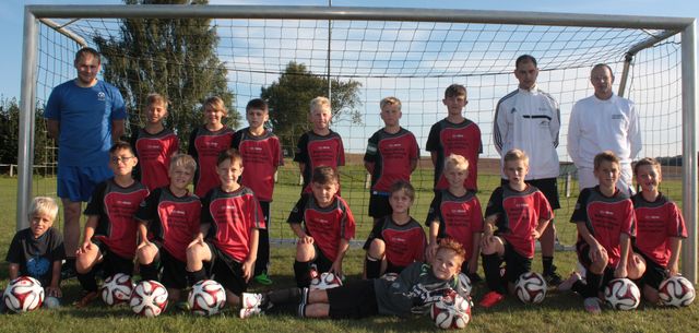 Mit einem Satz neuer Trikots erfreute der Lardenbacher Malermeister Frank Hoffmann dieser Tage die E-Jugendmannschaft der Jugendfußballspielgemeinschaft Lardenbach/Klein-Eichen, Groß-Eichen, Sellnrod und Weickartshain. Bei der Übergabe der Hosen, Hemden und Stutzen bedankten sich Jugendwart und Trainer Stefan Weeke und Jugendbetreuer Paul Ebenhöh, sowie auch die jungen Fußballer mit einem kräftigen „Danke schön“ bei dem Lardenbacher Unternehmer. Unser Bild zeigt die jungen Nachwuchsfußballer mit Trainer Stefan Weeke (2.v.r.), Betreuer Paul Ebenhöh (li) und Spender Frank Hoffmann (re).