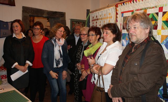 Ein proppenvolles Barfüßerkloster, die Darbietungen des „Ilsdorfer Flöten-Ensemble und die Bewunderung der weit über 100 Ausstellungsstücken waren das äußere Zeichen der Eröffnung der unter dem Motto „Patchwork“, das aus dem Rahmen fällt“ stehenden Ausstellung der Quiltfreunde Lardenbach/Klein-Eichen. Mit ihren Instrumenten erfreuten zu Beginn und während der Veranstaltung unter der Leitung von Minette Kraft Flötenspielerinnen Lisa Breuning, Jana Löffert, Johanna Weicker und Klara Gerken mit einem alten Tanz, einen Folklied aus Irland und einem modernen Kinderlied mit Drehorgel-Charakter die Anwesenden.