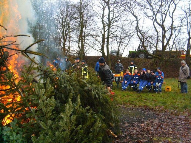 Unterstützt von einigen Aktiven der Einsatzabteilung sammelten am vergangenen Samstag sieben Mitglieder der Jugendfeuerwehr Lardenbach/Klein-Eichen die ausgedienten Weihnachtsbäume in beiden Grünberger Stadtteilen ein. In drei mit Zugfahrzeug und Anhänger ausgestatten Gruppen wurden die einzelnen Straßen abgefahren und die an den Grundstücksgrenzen liegenden Weihnachtbäume aufgeladen. An der Brandstelle im Lardenbacher Steinbruch entzündete Jugendwart Christian Lückhoff anschließend den zunächst stark rauchenden und dann doch in Flammen aufgehenden Nadelholz-Haufen.